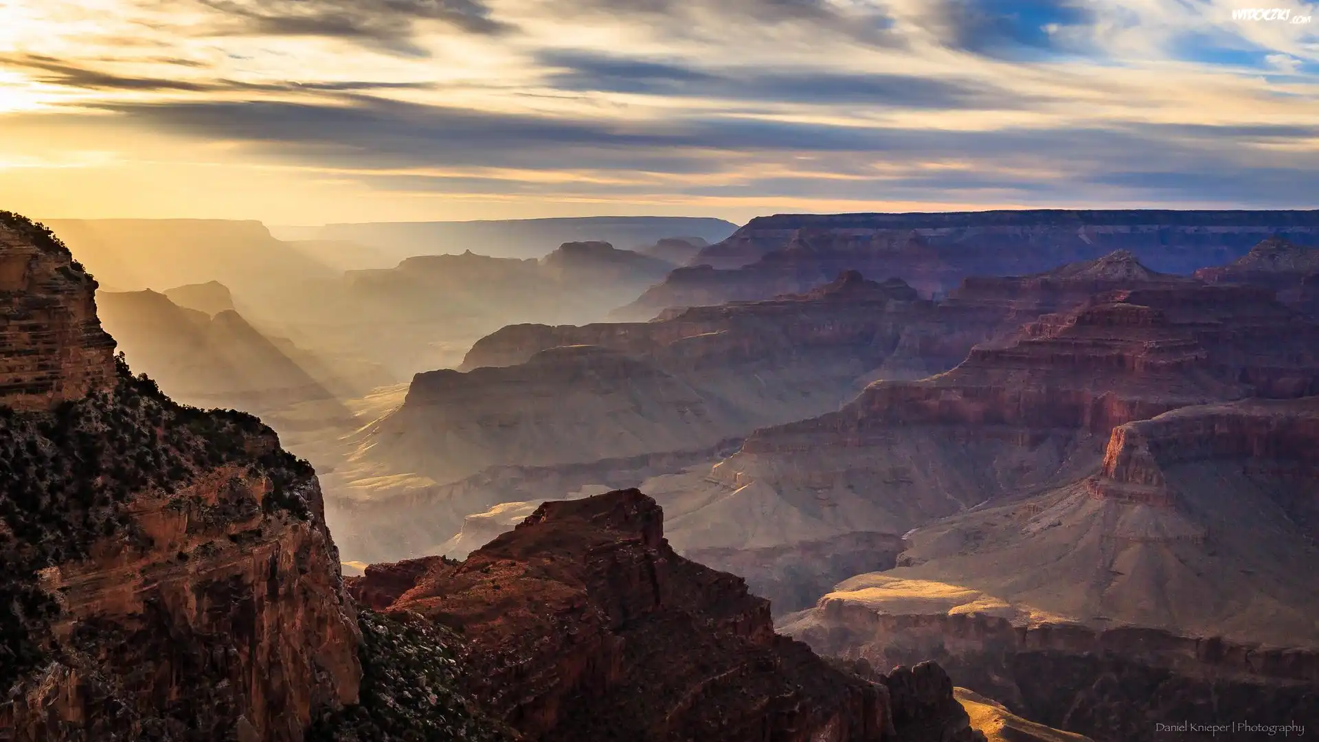 Skały, Góry, Wschód słońca, Park Narodowy Wielkiego Kanionu, Wielki Kanion Kolorado, Grand Canyon, Stany Zjednoczone |