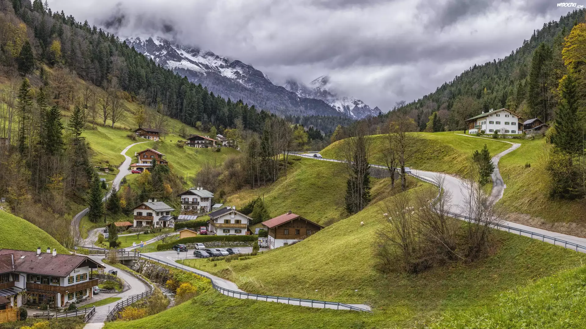 Zdjęcia, Szwajcaria, Gmina Albinen, Powiat Leuk, Kanton Valais, Wieś, Domy, Drogi, Góry, Drzewa