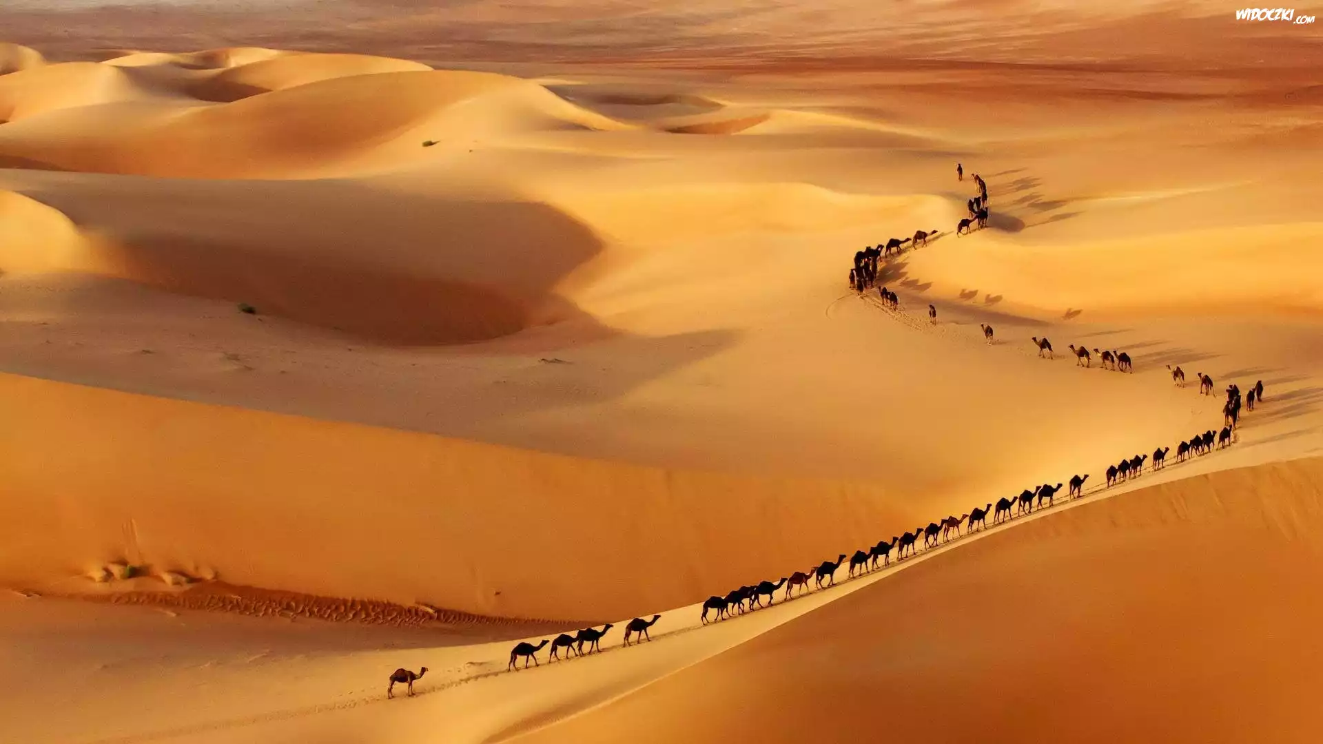 Zdjęcia, Pustynia, Karawana, Wielbłądy