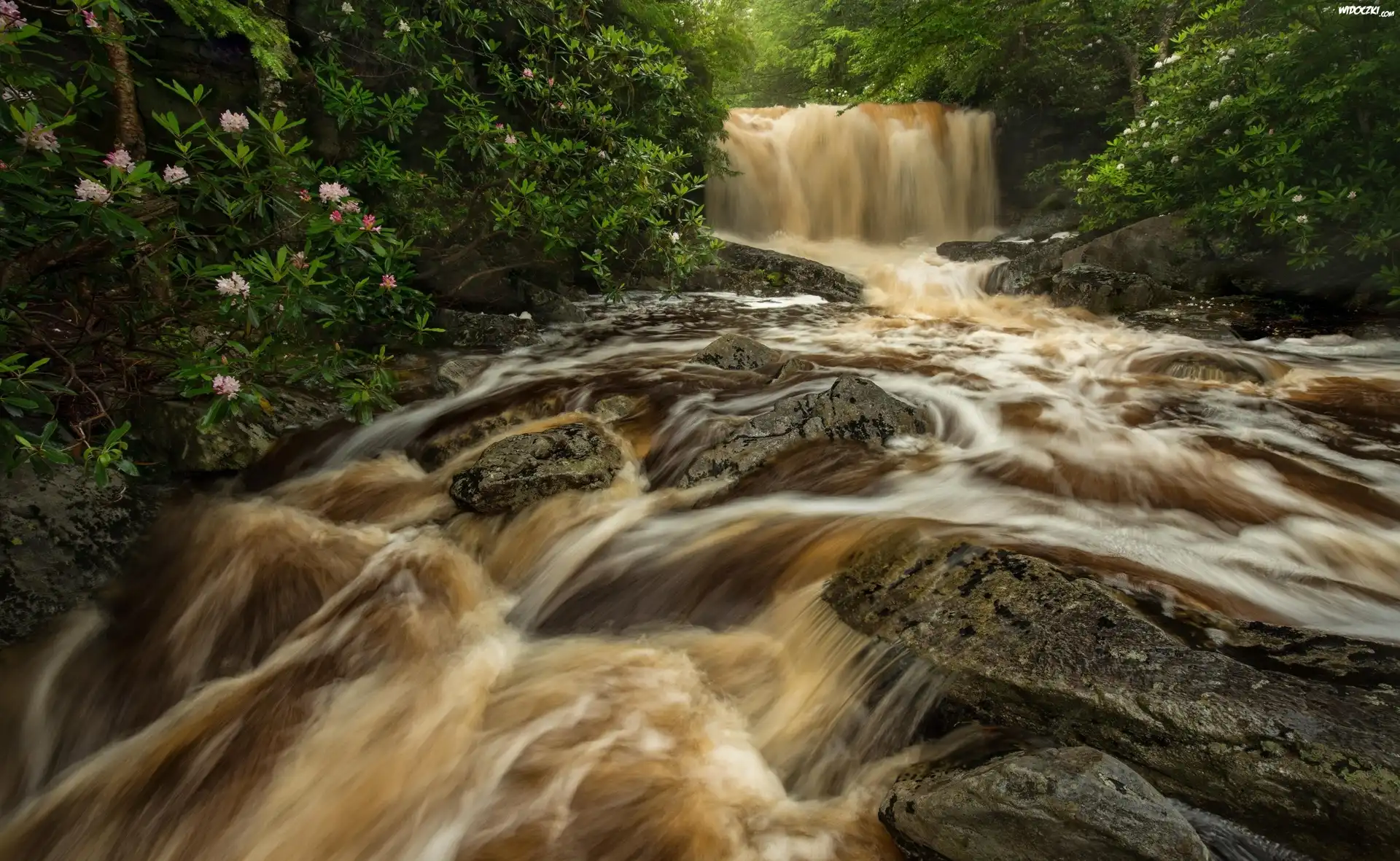 Zdjęcia, Kaskady, Wody, Las, Skały, Rzeka