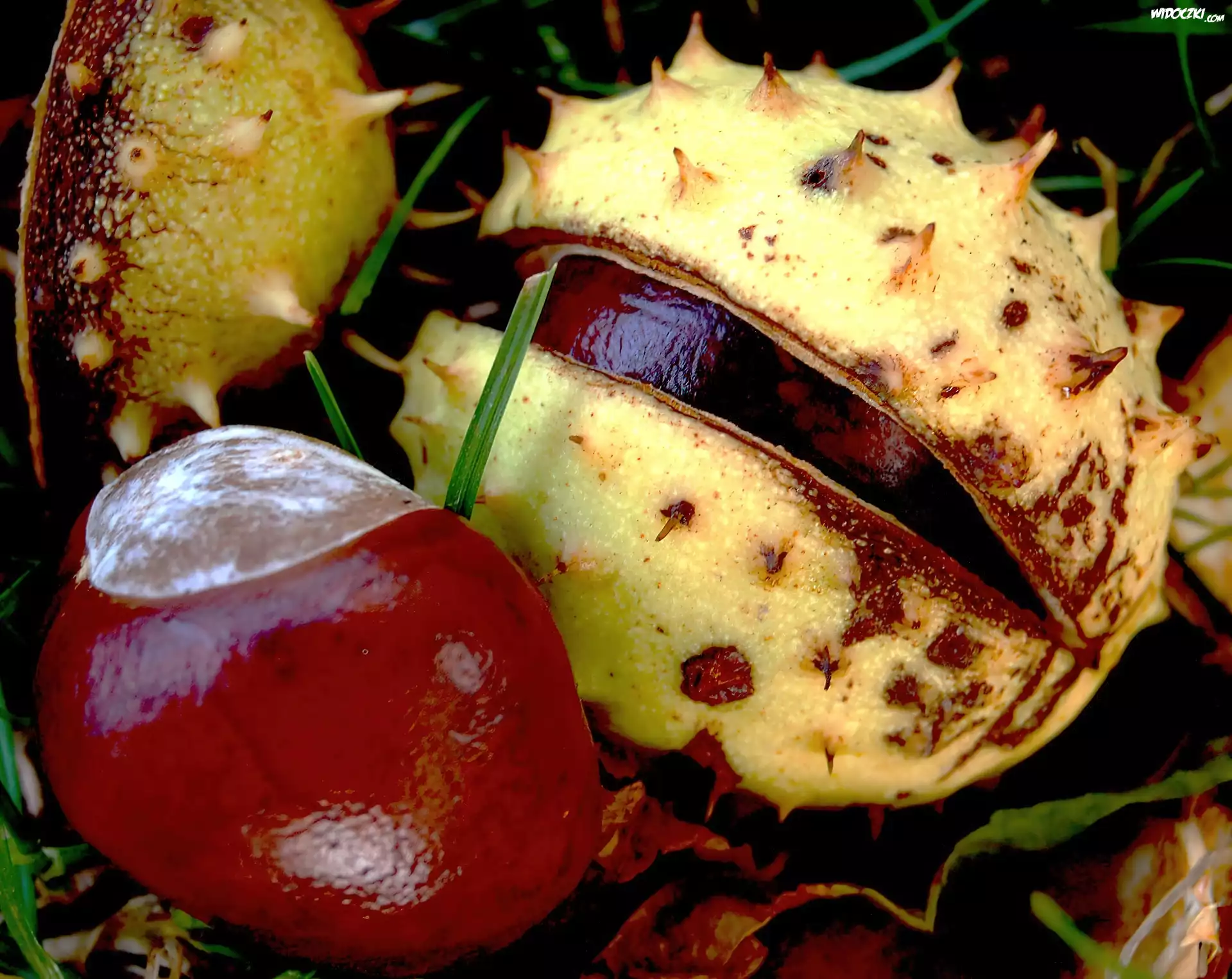 Zdjęcia, Brązowe, Kasztany, Trawa