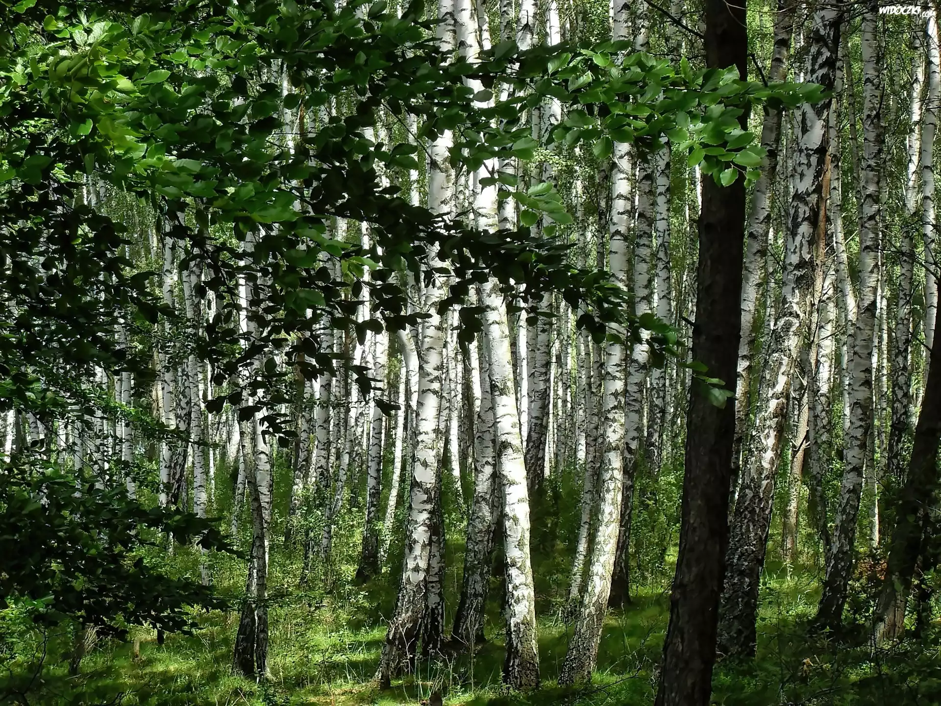 Zdjęcia, Kaszuby, Borsk, Las, Drzewa, Brzozy, Olcha