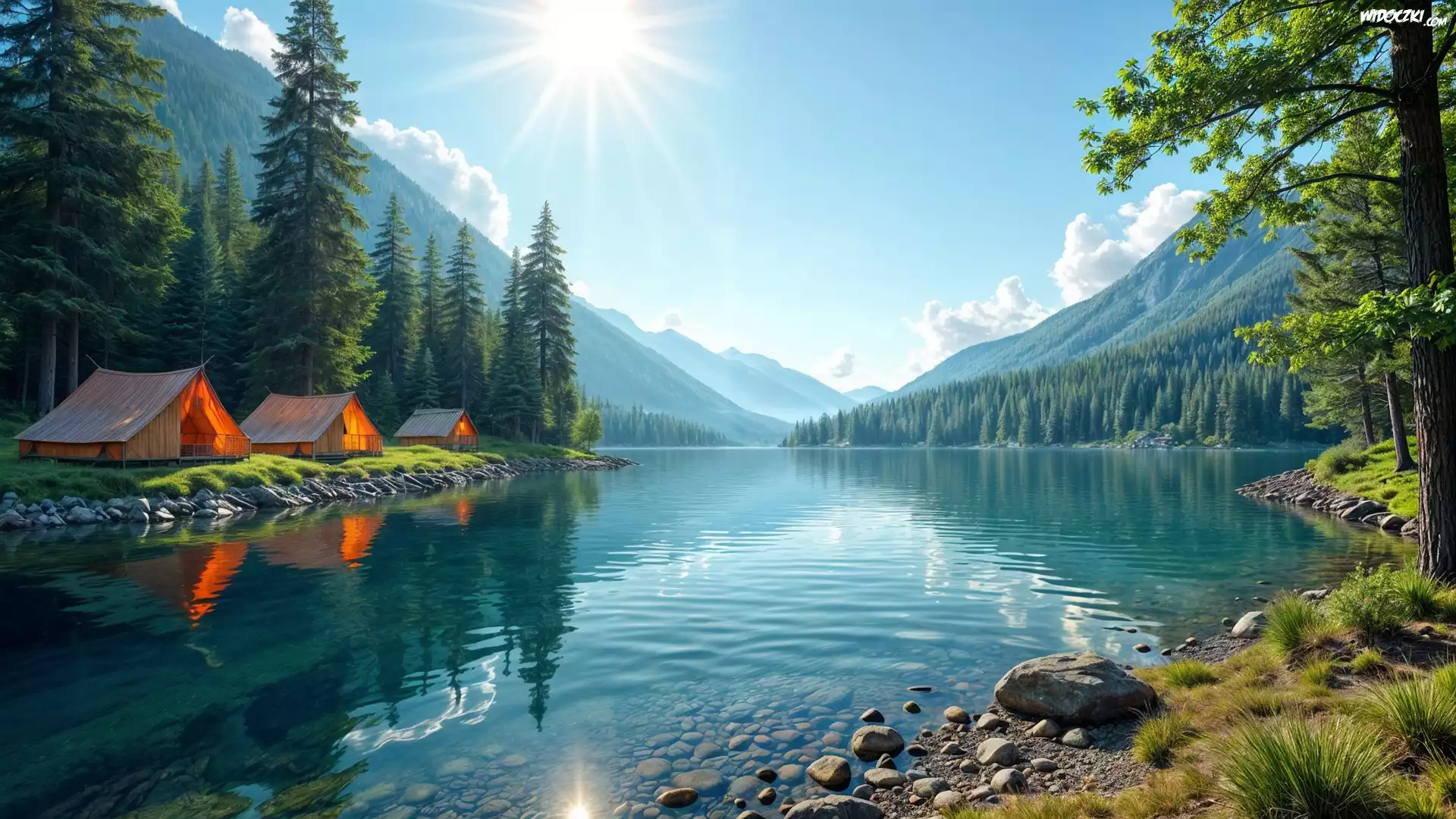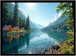 Zdjęcia, Jezioro, Kemping, Namioty, Góry, Drzewa