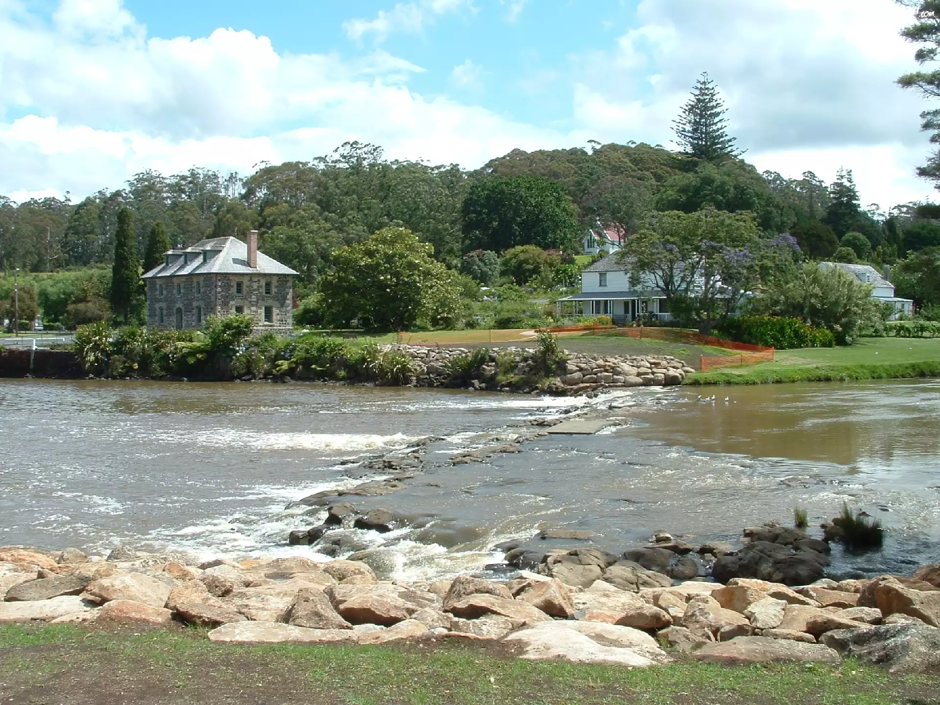 Kerikeri, Woda, Kamienie, Domy, Drzewa