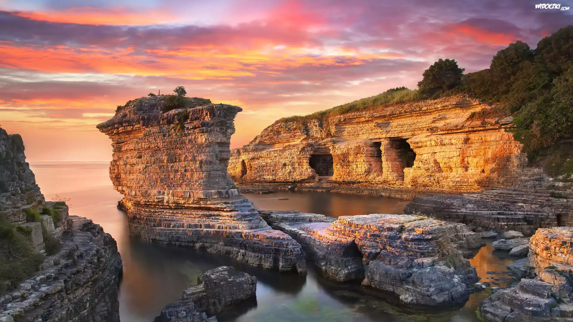 Turcja, Kerpe, Skały, Morze Czarne, Zachód słońca