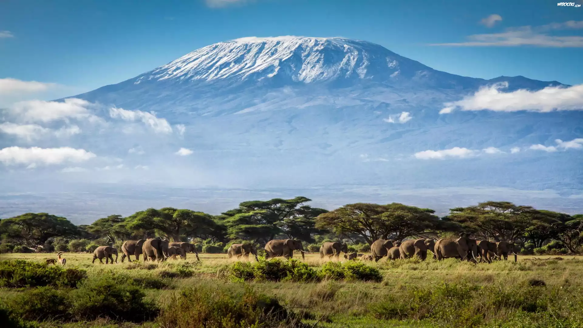 Zdjęcia, Kilimandżaro, Tanzania, Afryka, Góry, Słonie
