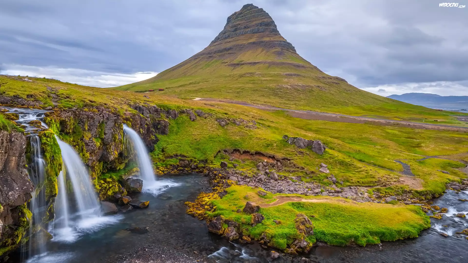 Zdjęcia, Góra Kirkjufell, Wodospad Kirkjufellsfoss, Islandia
