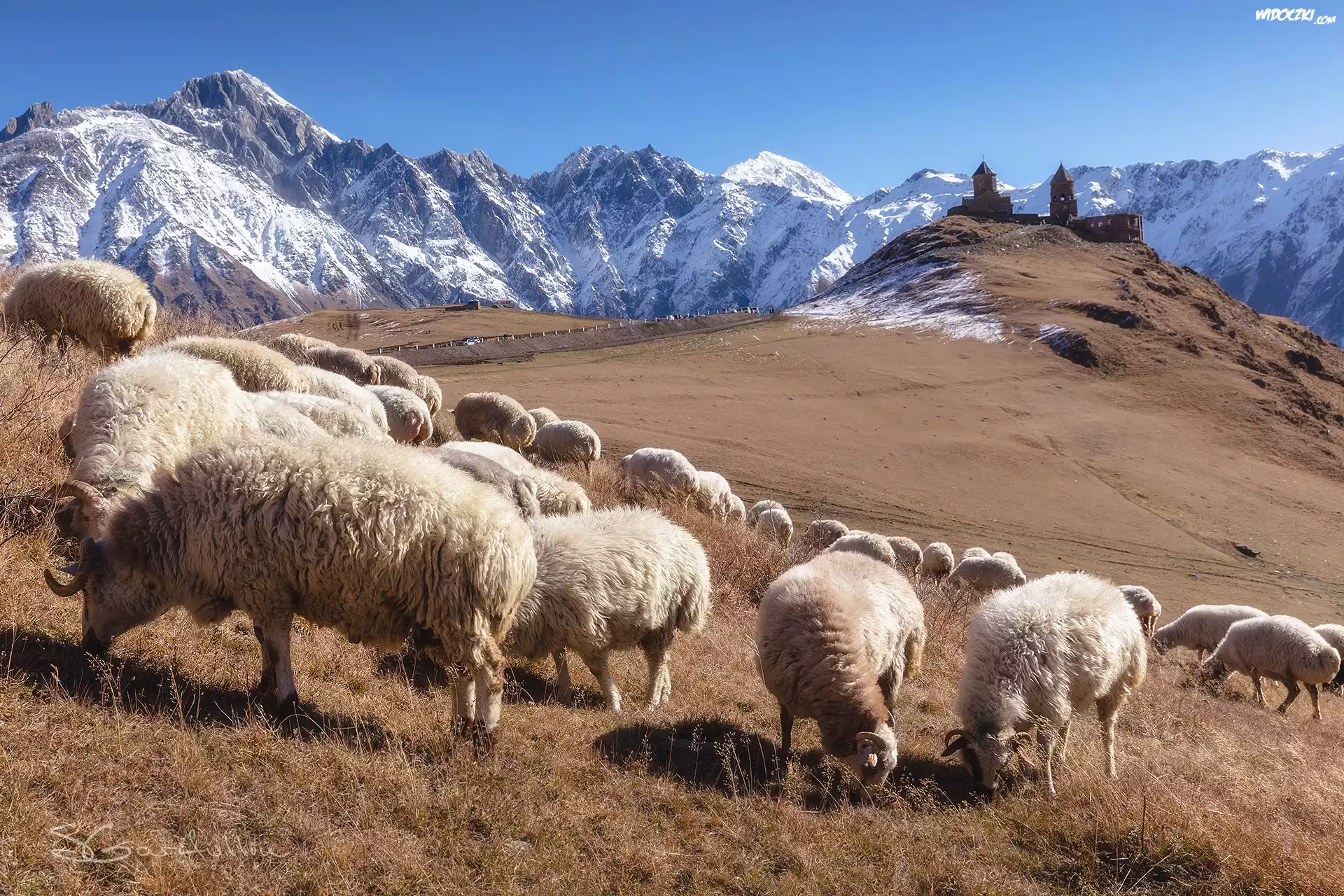 Zdjęcia, Góry, Góra, Kazbek, Owce, Kościół, Klasztor, Cminda Sameba, Świętej Trójcy, Gergeti, Gruzja