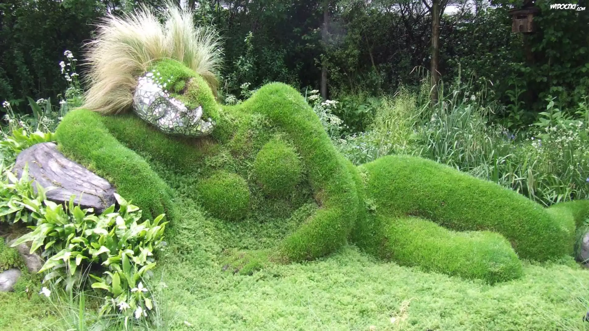 Zdjęcia, Kobieta, Klomb, Trawa