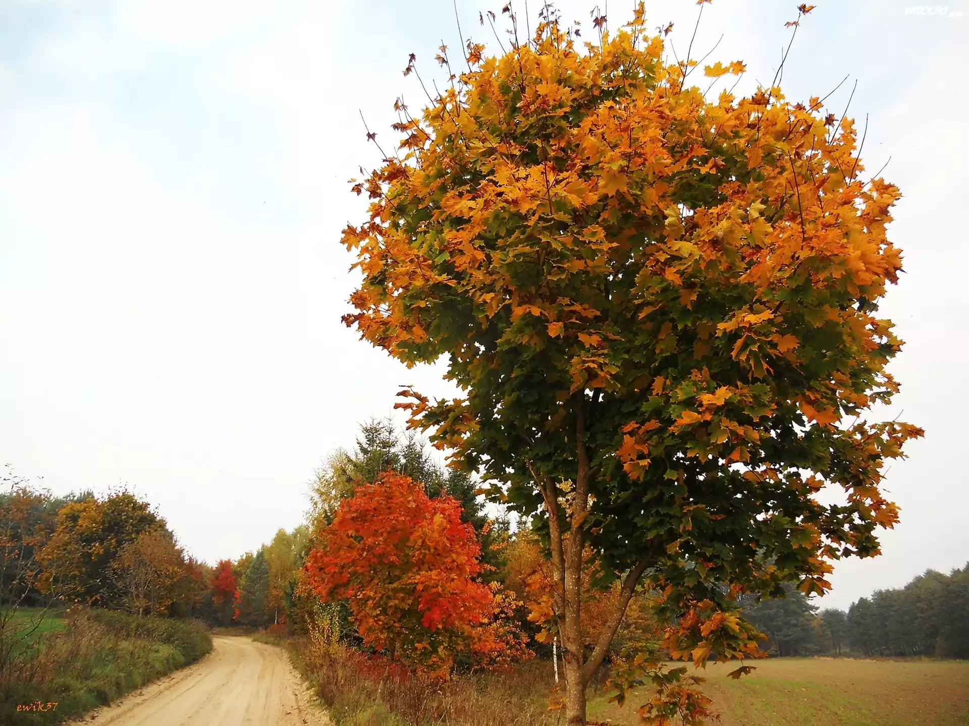Zdjęcia, Klonowe, Drzewo, Droga, Pole, Las