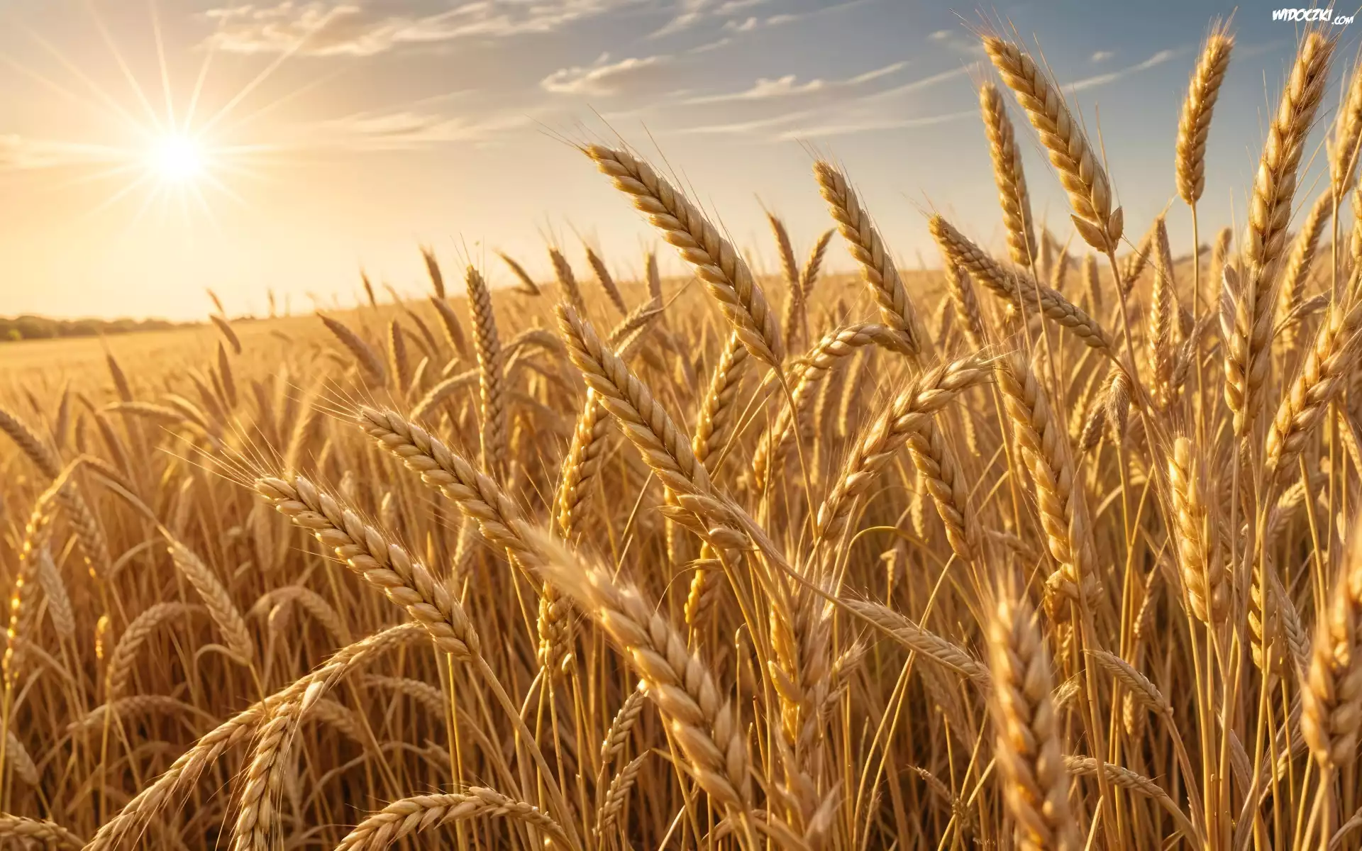 Zdjęcia, Pole, Zboże, Pszenica, Kłosy, Promienie słońca
