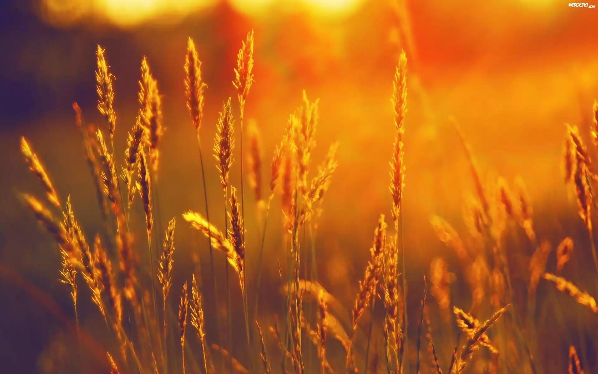 Zdjęcia, Kłosy, Zachód, Słońca, Rozmycie