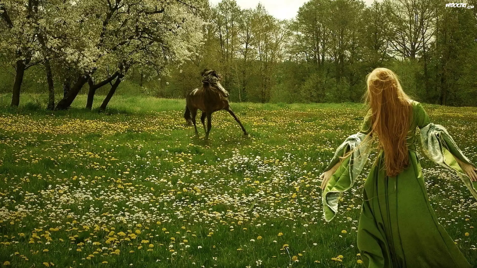 Zdjęcia, Kobieta, Koń, Łąka, Przyjażń