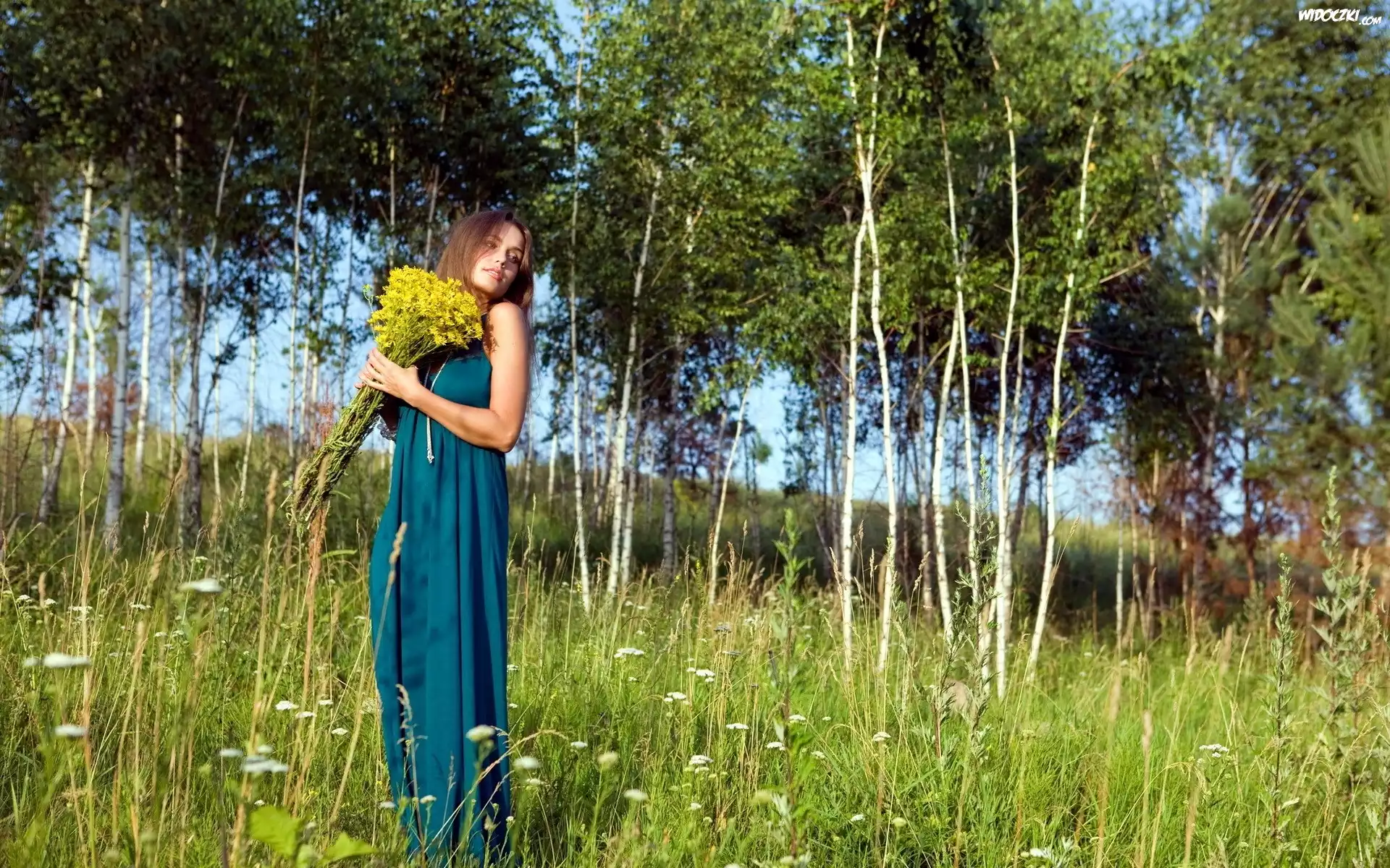 Łąka, Kobieta, Kwiaty
