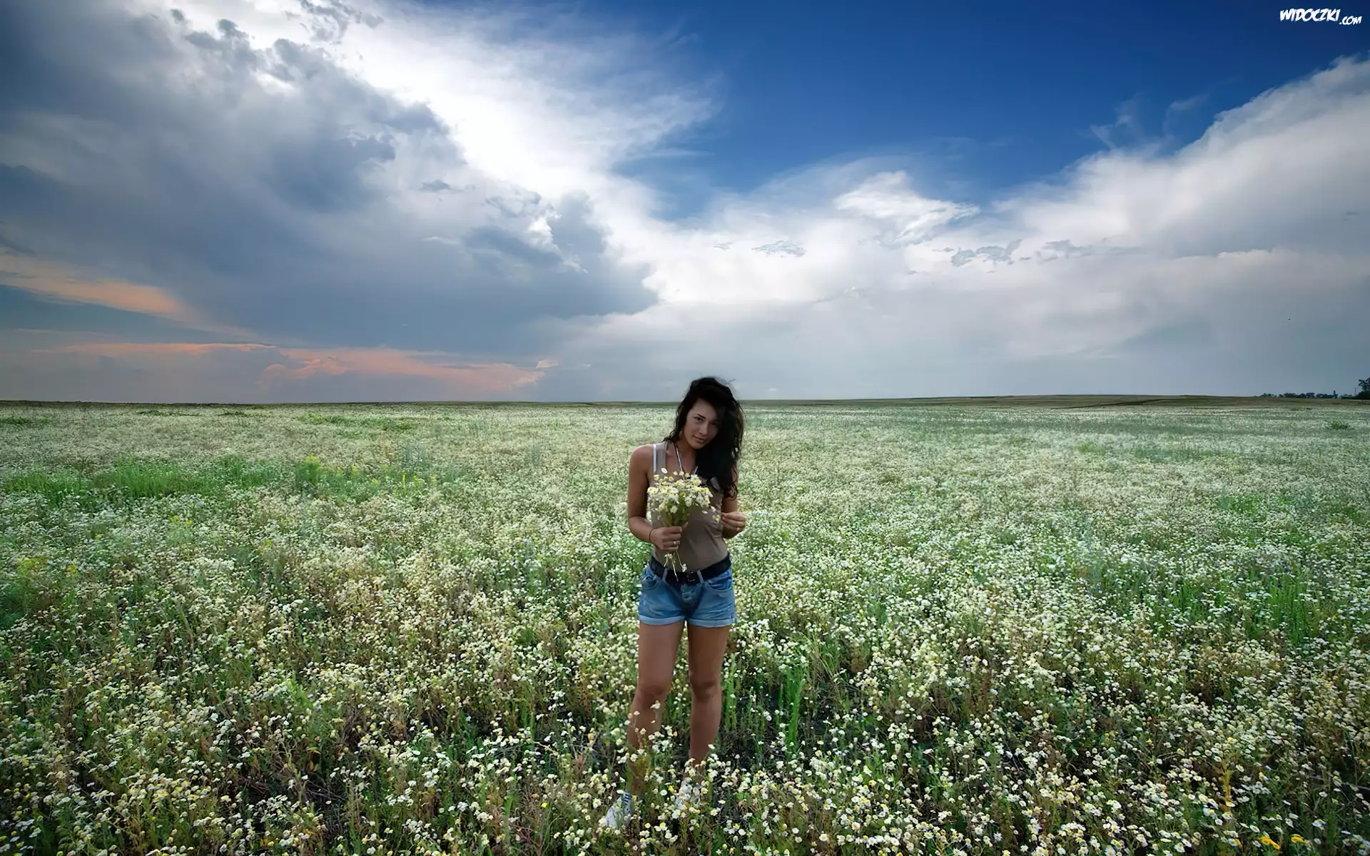 Zdjęcia, Kobieta, Pole, Bukiet, Rumianek