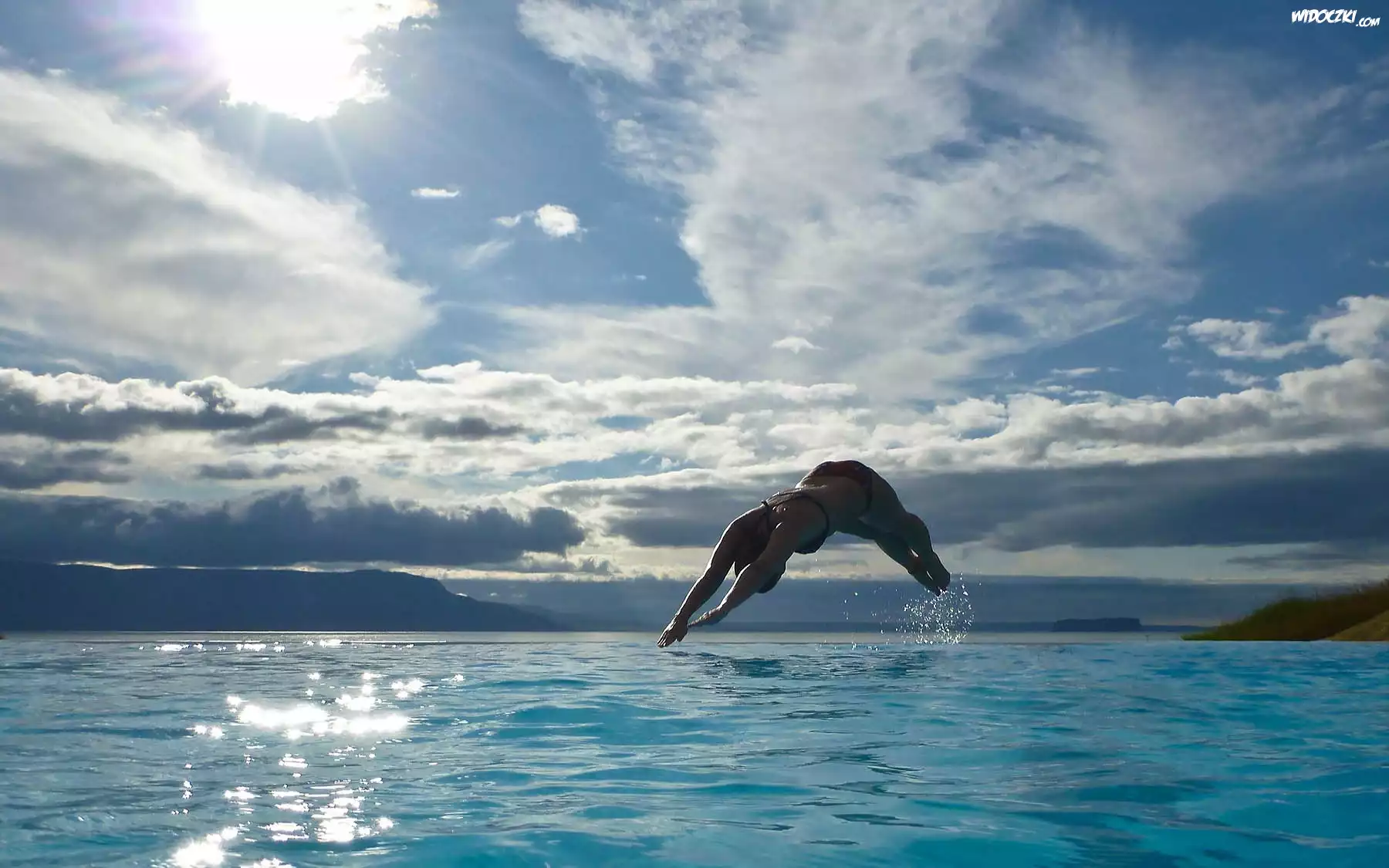 Kobieta, Morze, Chmury, Skok