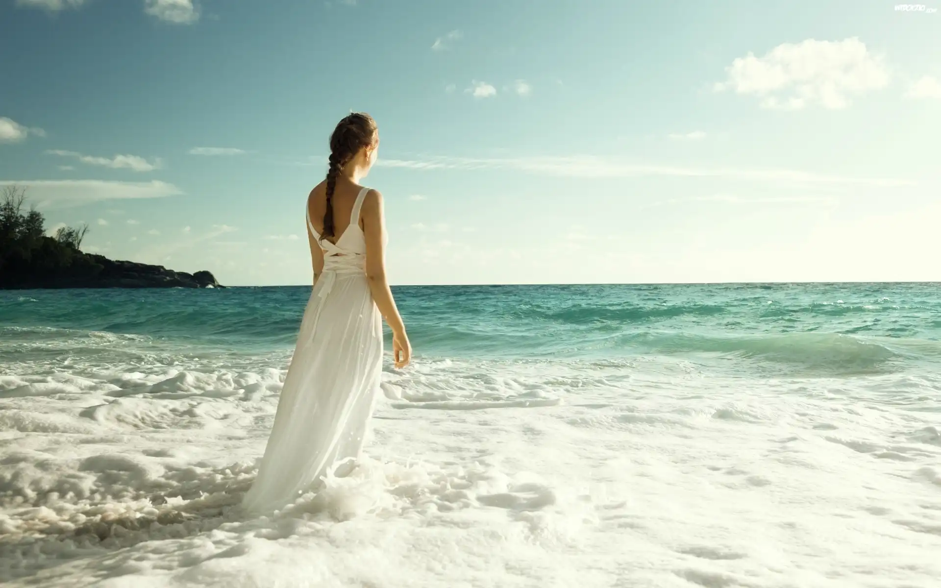 Zdjęcia, Kobieta, Morze, Fale, Skały
