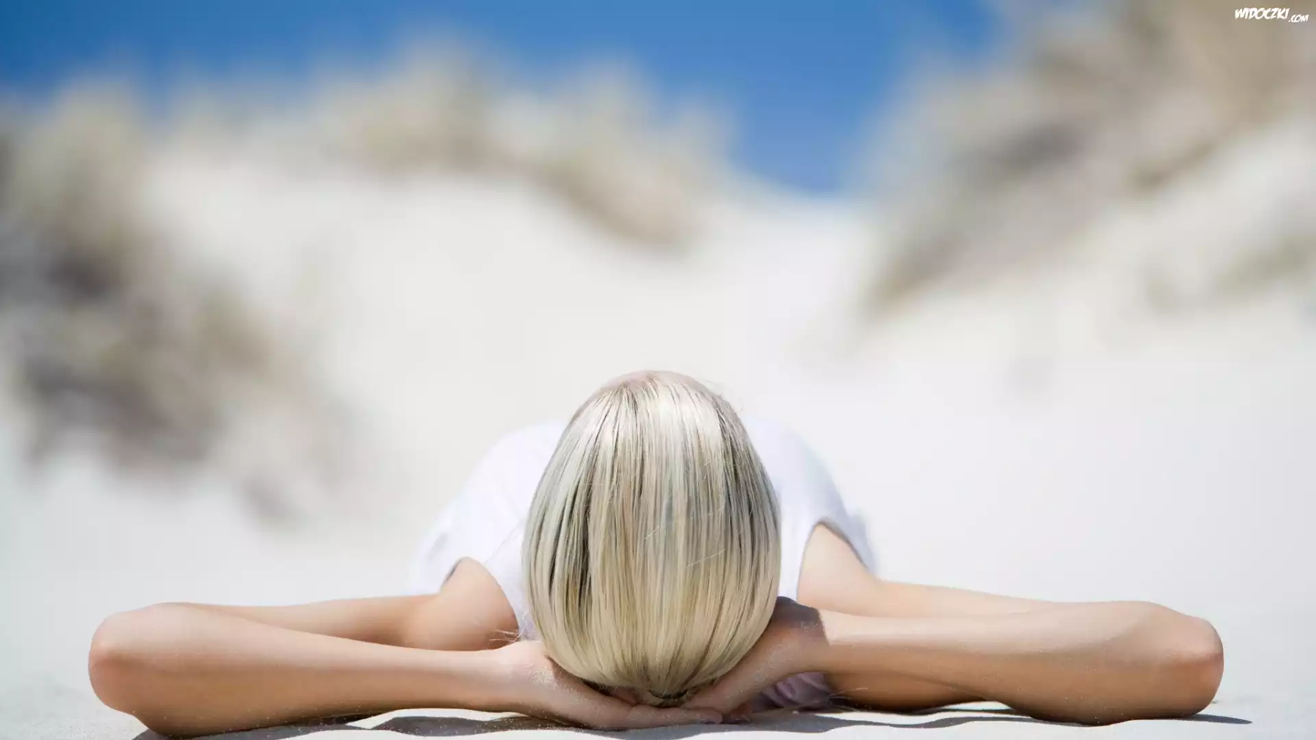 Zdjęcia, Kobieta, Blondynka, Odpoczynek, Głowa, Włosy