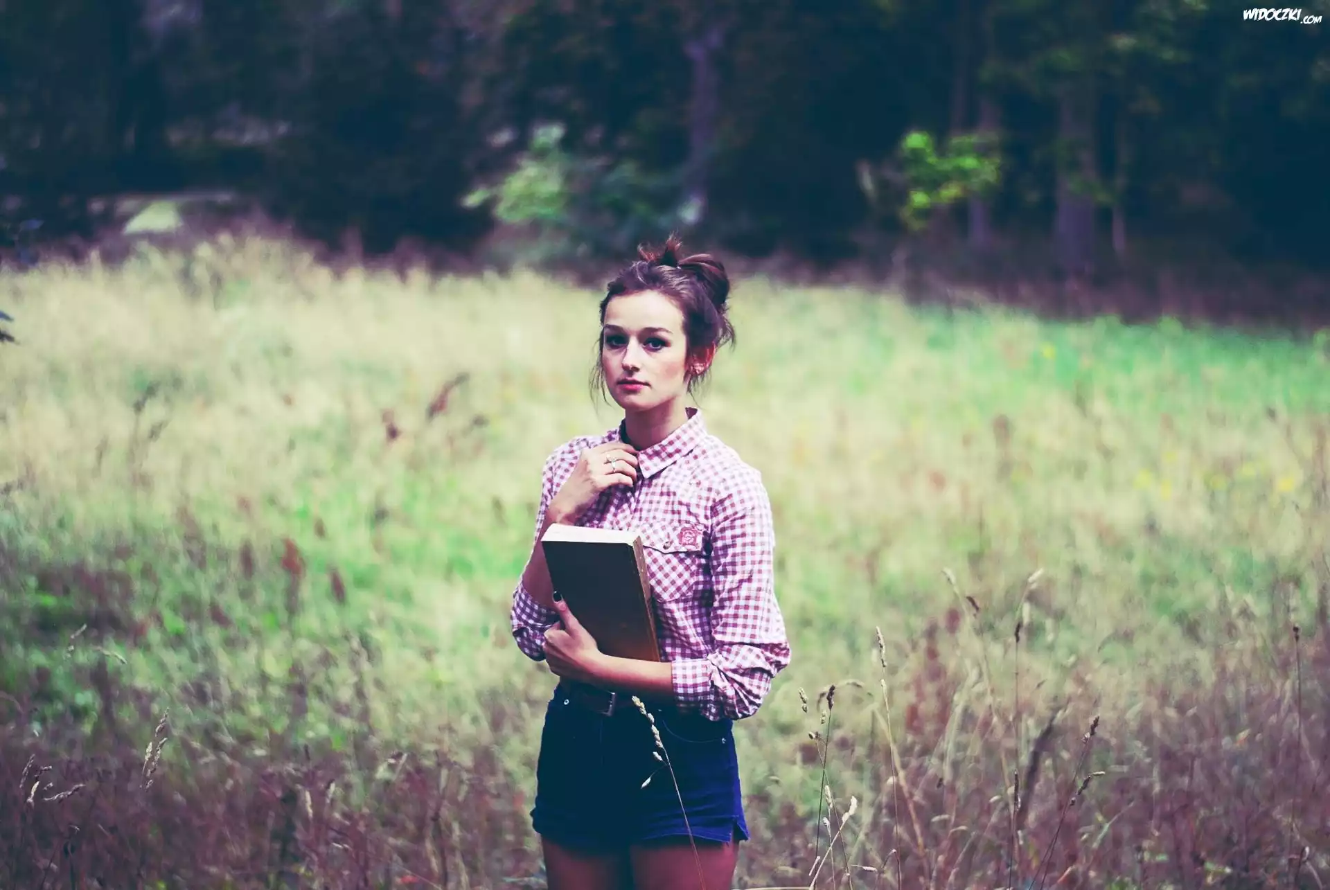 Zdjęcia, Kobieta, Brunetka, Książka, Łąka