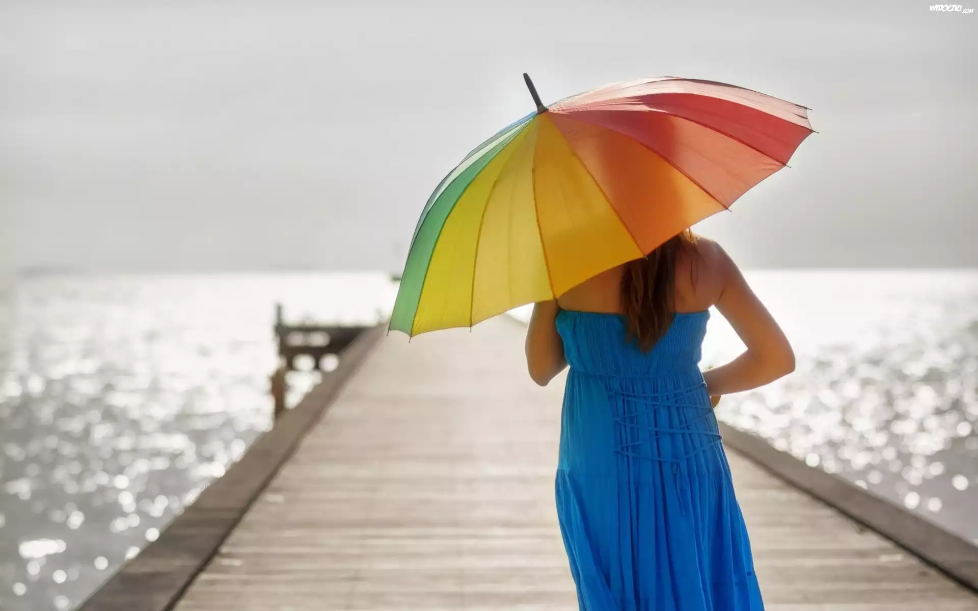 Zdjęcia, Kobieta, Lato, Parasol, Molo, Morze
