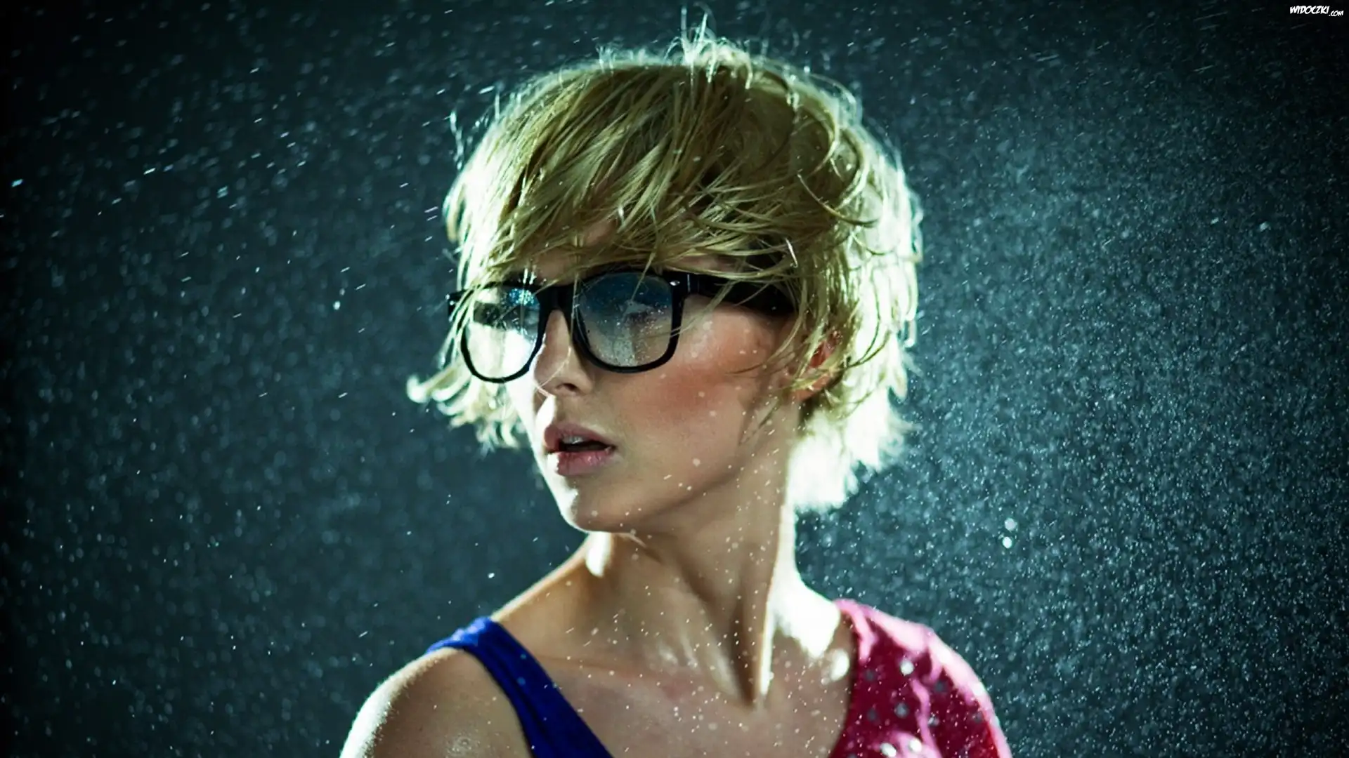 Zdjęcia, Kobieta, W Deszczu, Okulary, Zbliżenie