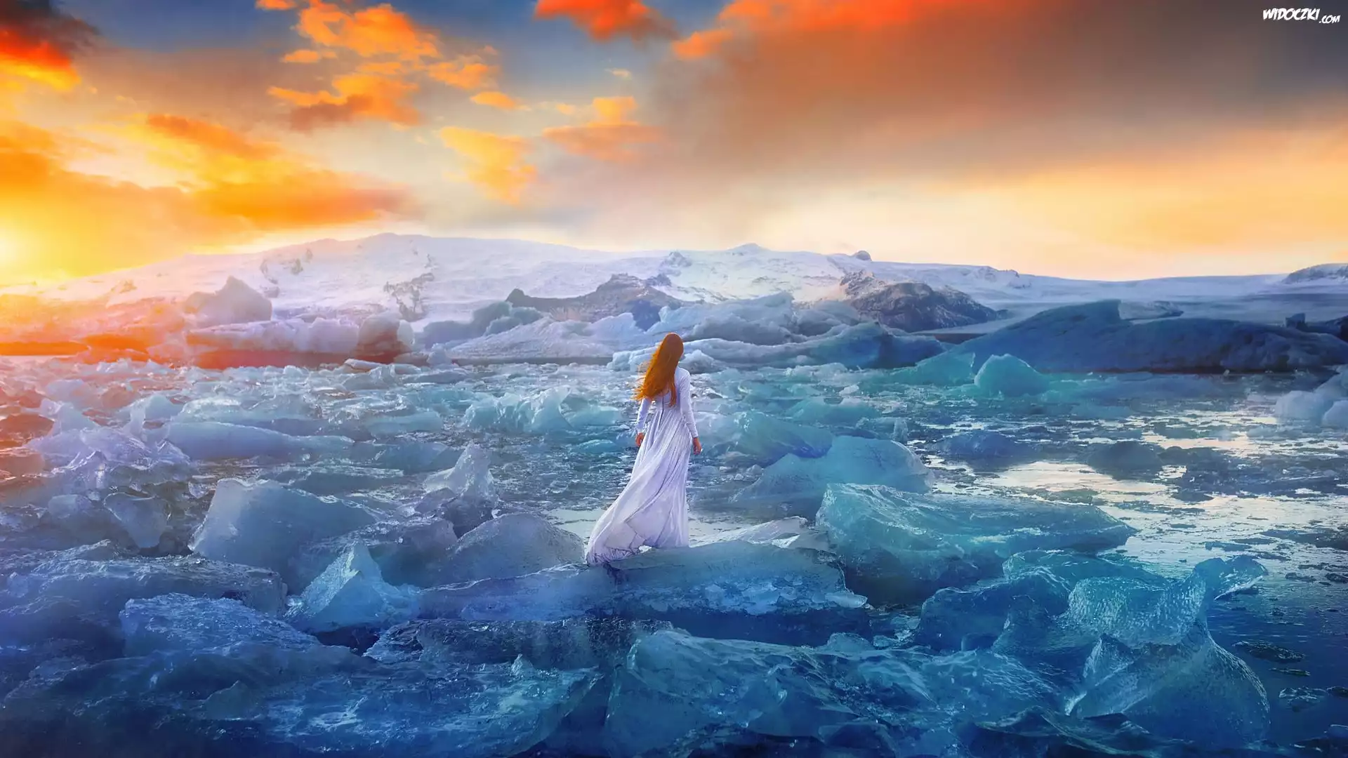 Zdjęcia, Kobieta, Morze, Skały, Lodowe