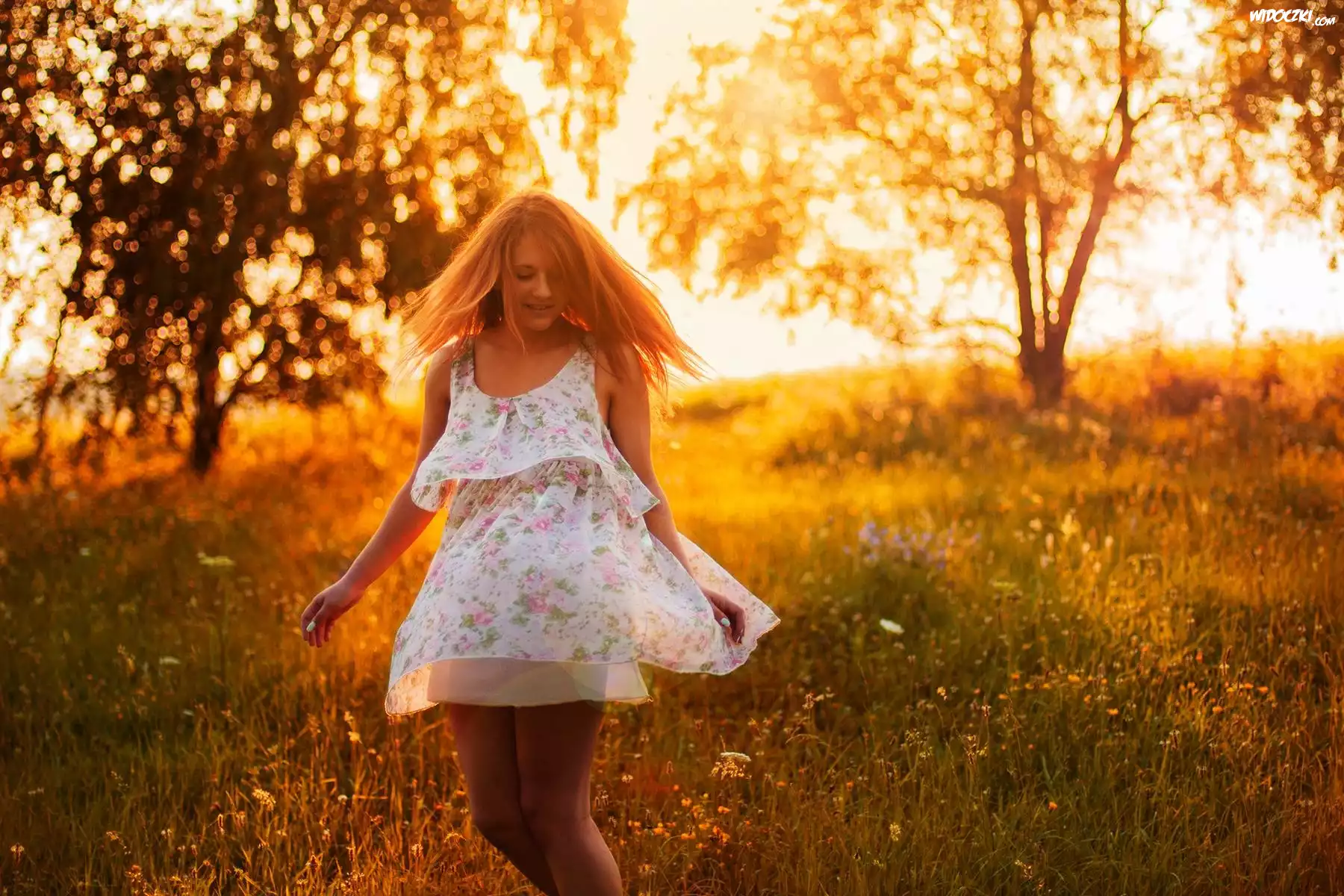 Zdjęcia, Kobieta, Kwiatowa, Sukienka, Las
