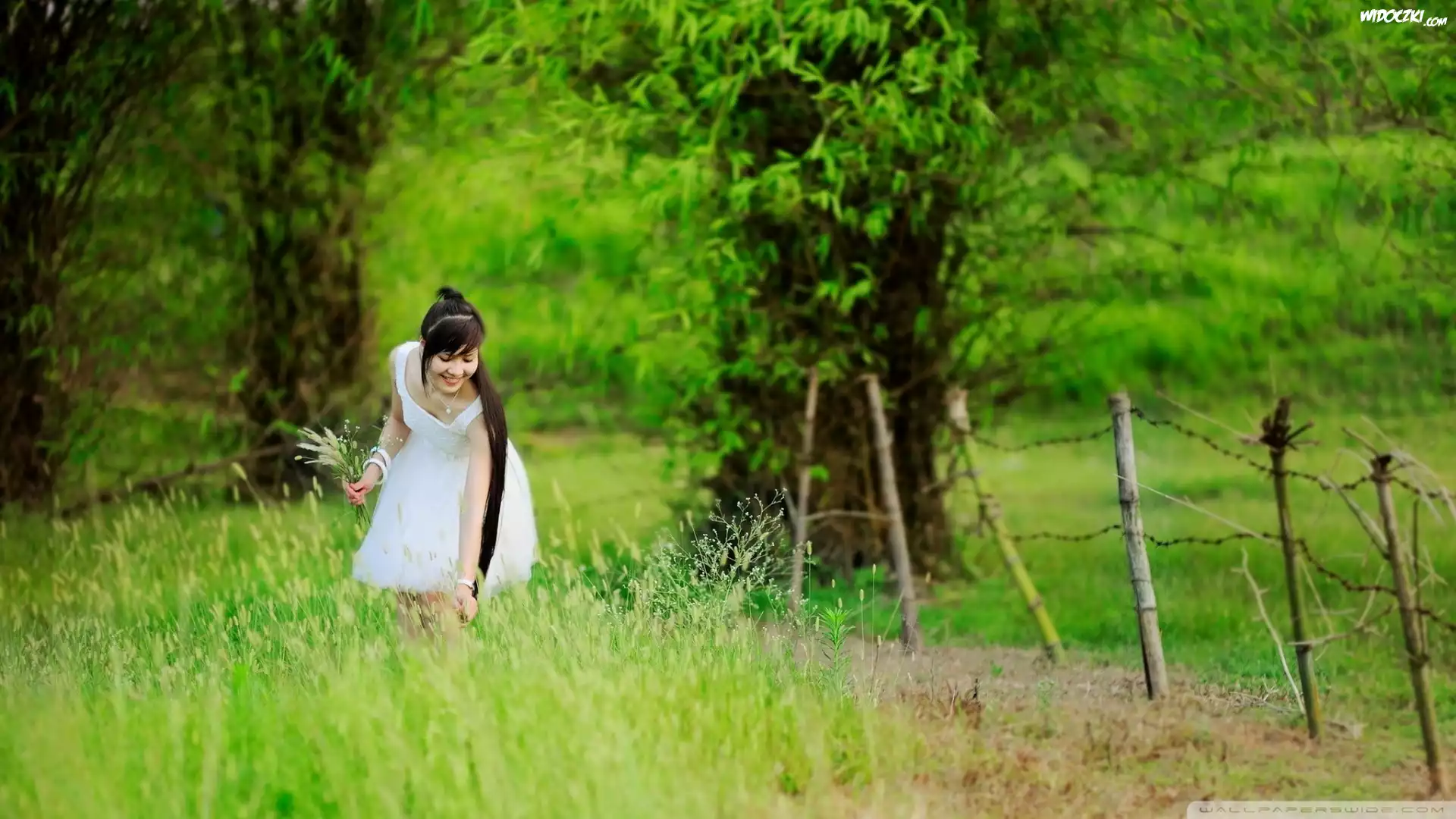 Zdj臋cia, Kobieta, Polana, Trawy, Las