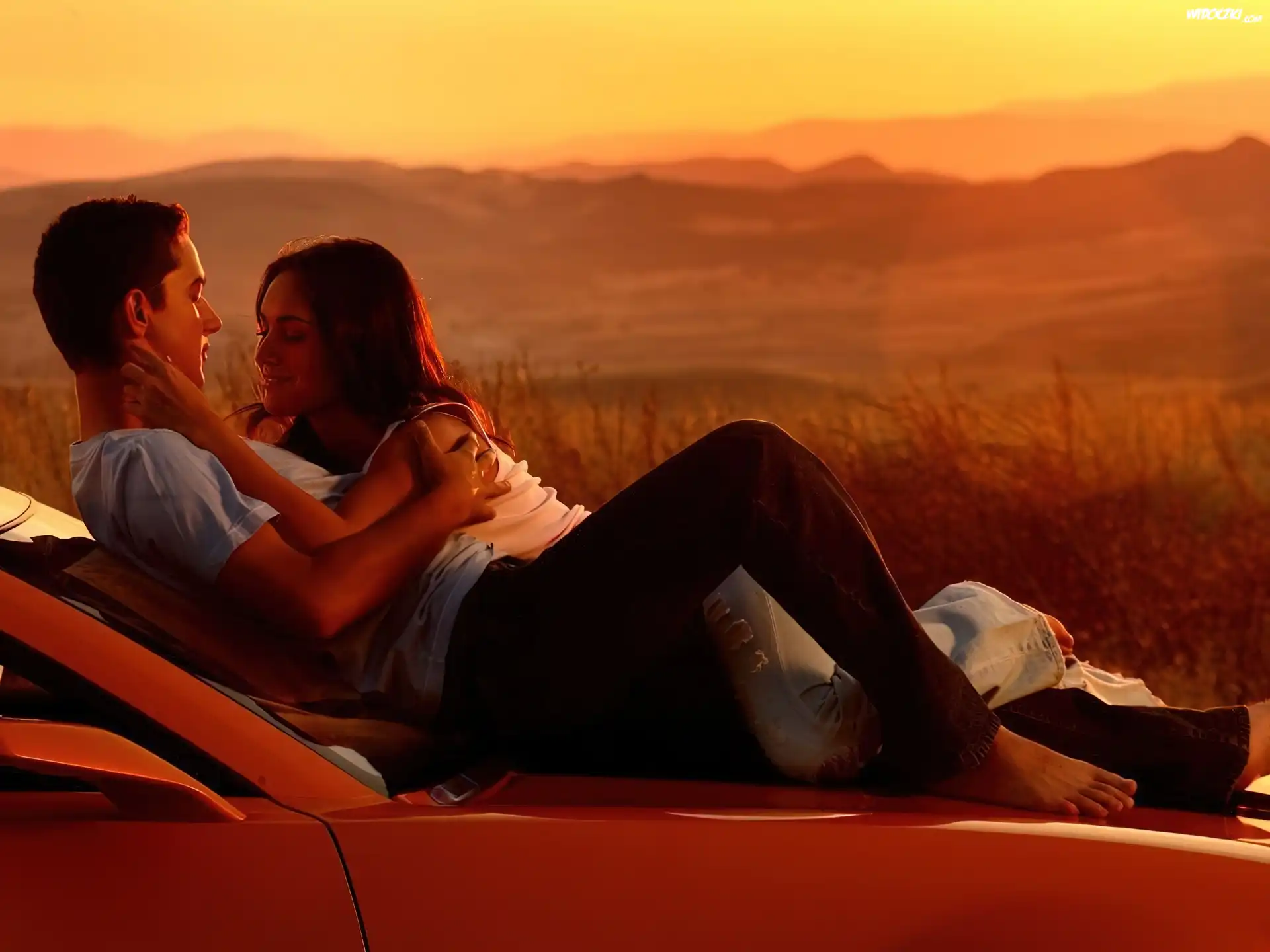Zdjęcia, Kobieta, Mężczyzna, Para, Zachód Słońca