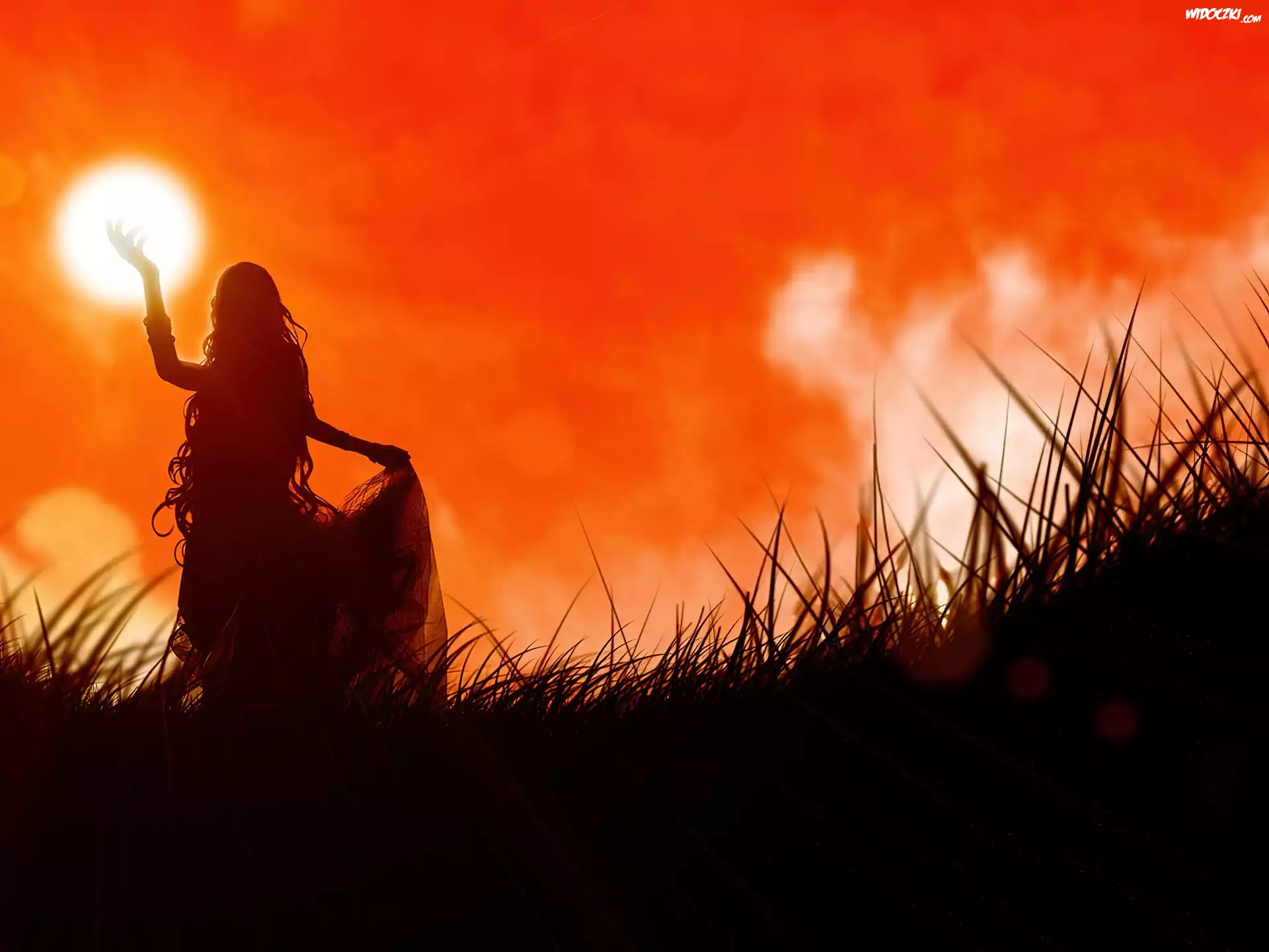 Zdjęcia, Kobieta, Sylwetka, Zachód Słońca