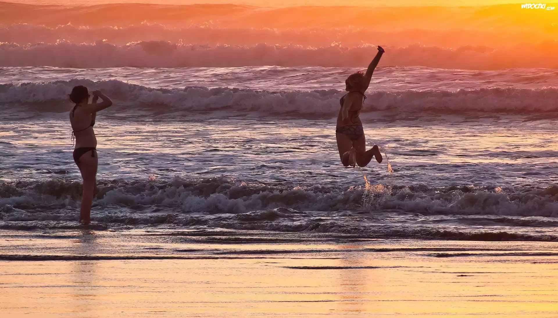 Zdjęcia, Kobiety, Morze, Zachód Słońca