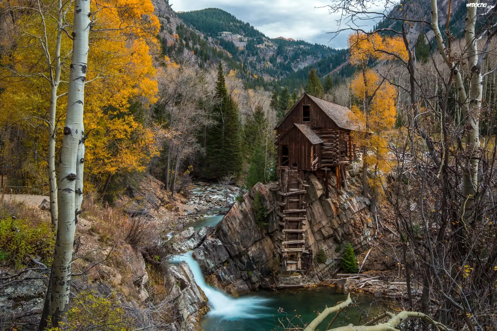 Zdjęcia, Młyn, Wodny, Cristal Mill, Góry, Las, Potok, Skały, Kolorado