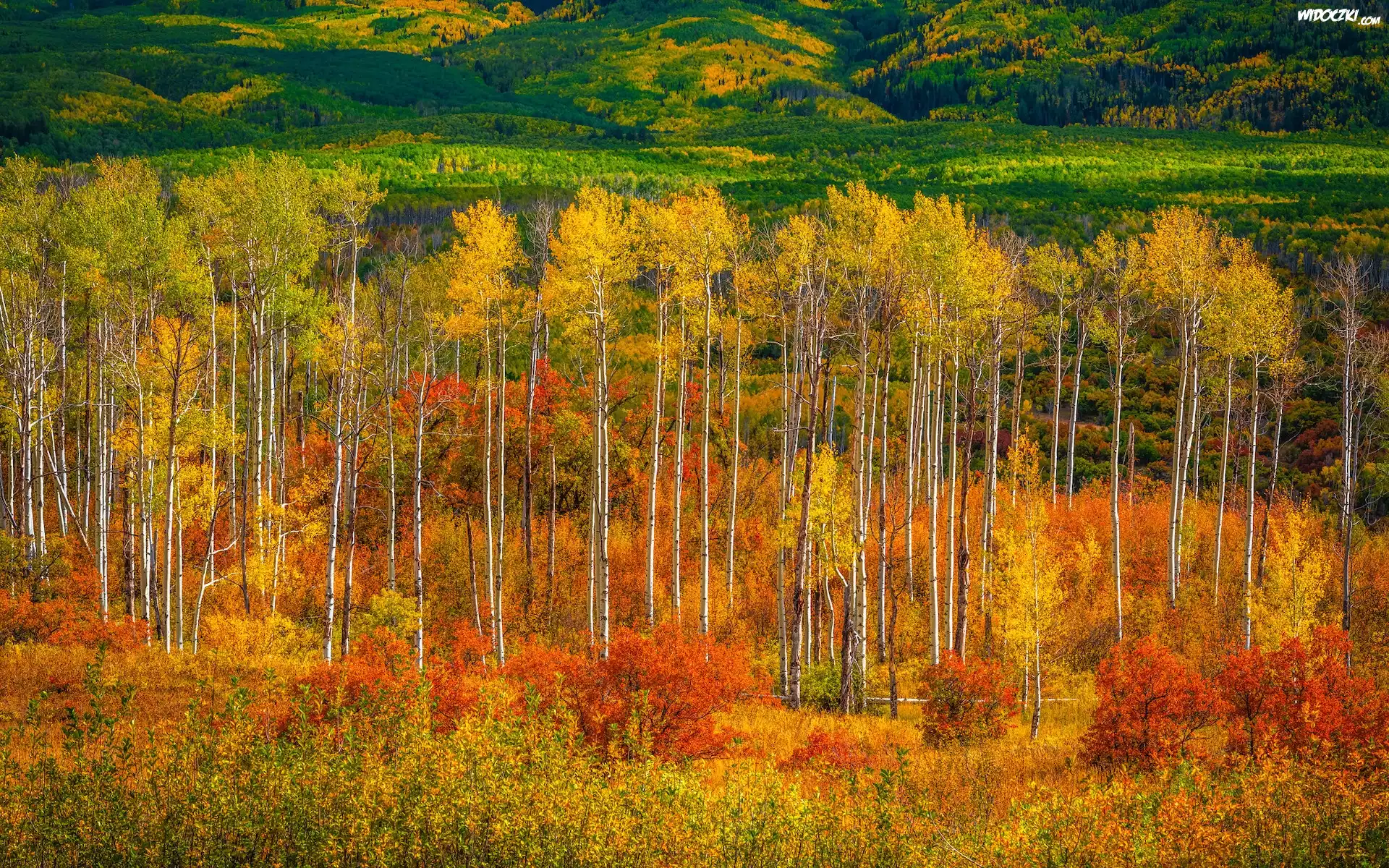 Zdjęcia, Stany Zjednoczone, Kolorado, Przełęcz, Kebler Pass, Drzewa, Topole osikowe, Lasy, Jesień
