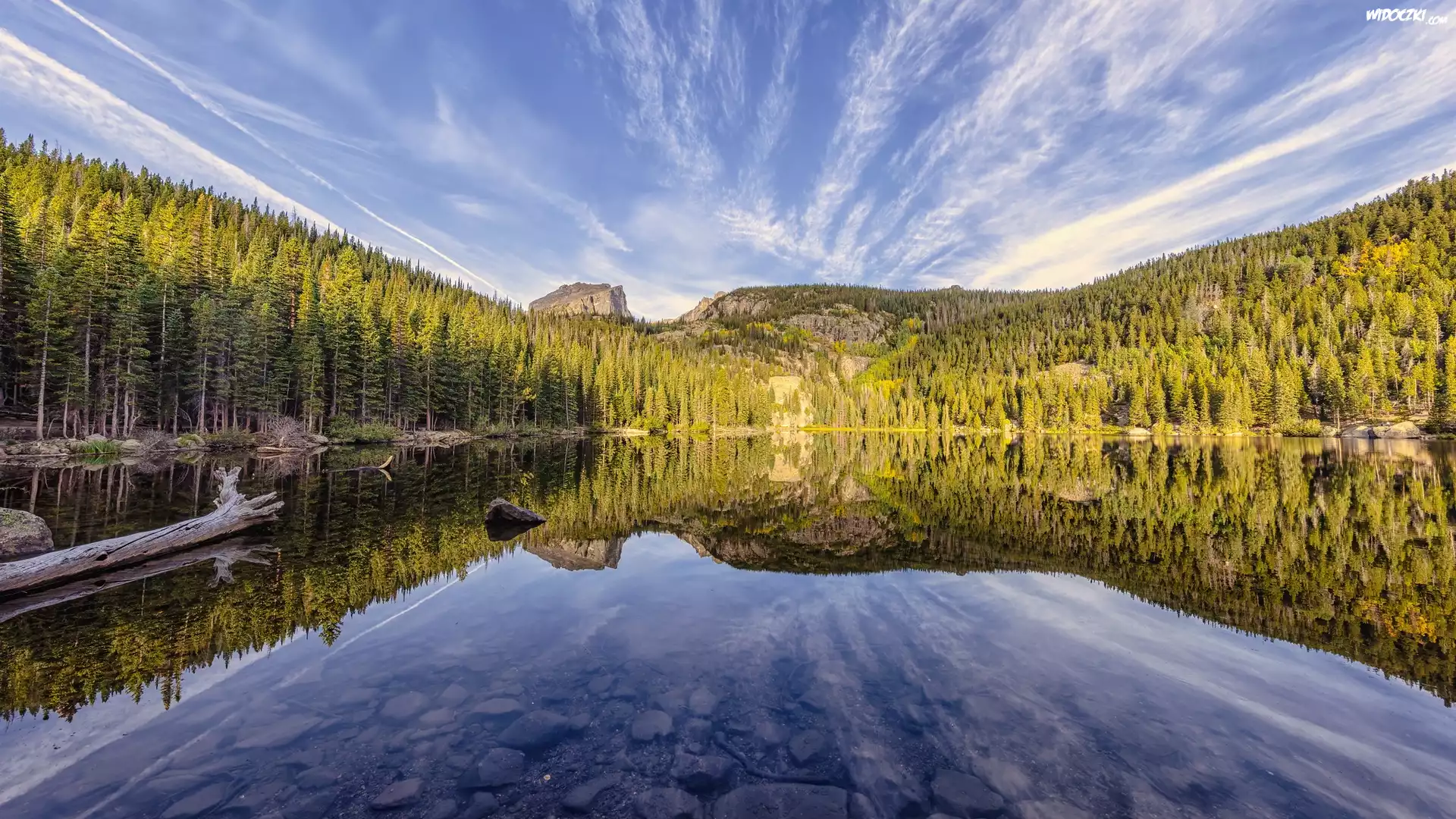 Jezioro, Bear Lake, Park Narodowy Gór Skalistych, Stan Kolorado, Stany Zjednoczone, Drzewa, Las, Odbicie |