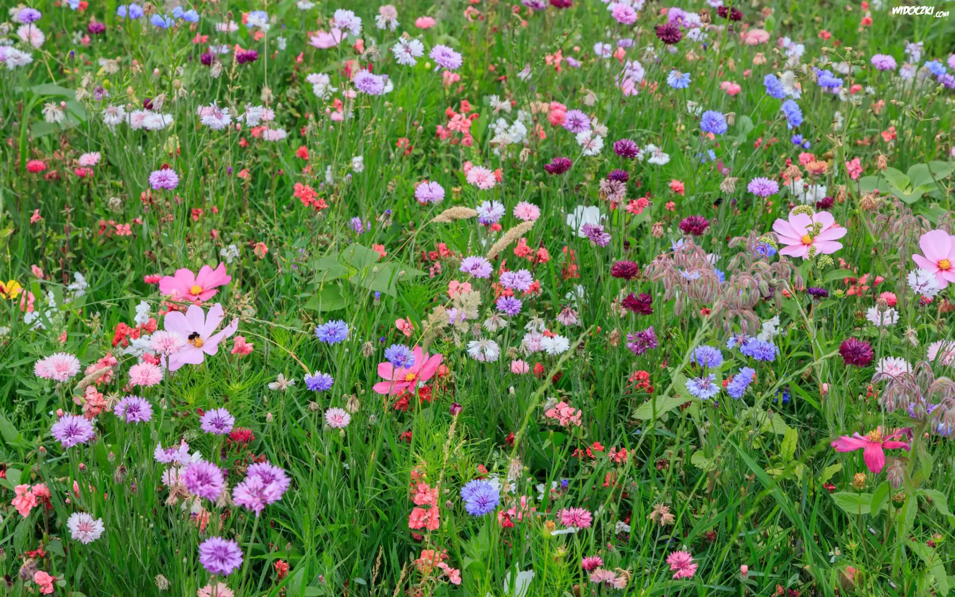 Zdjęcia, Kolorowe, Kwiaty, Kosmea, Chabry, Łąka