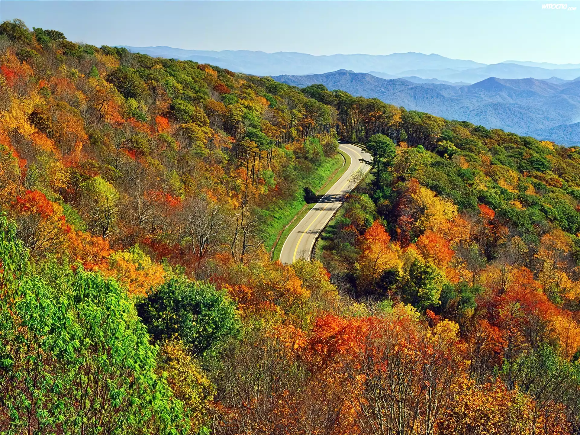 Zdjęcia, Kolorowe, Drzewa, Droga, Jesień, Lasy