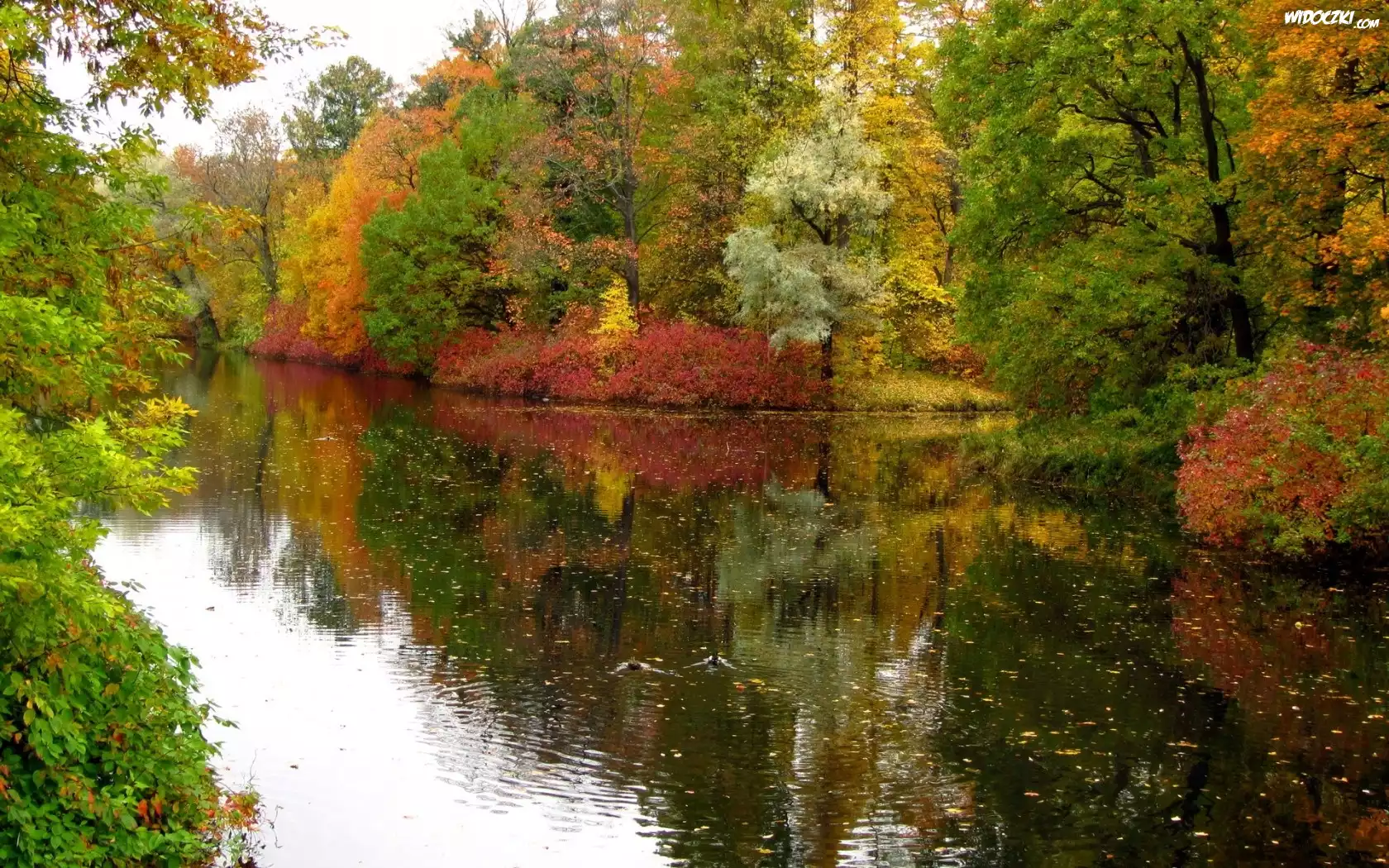 Kolorowe, Drzewa, Jesieni, Rzeka