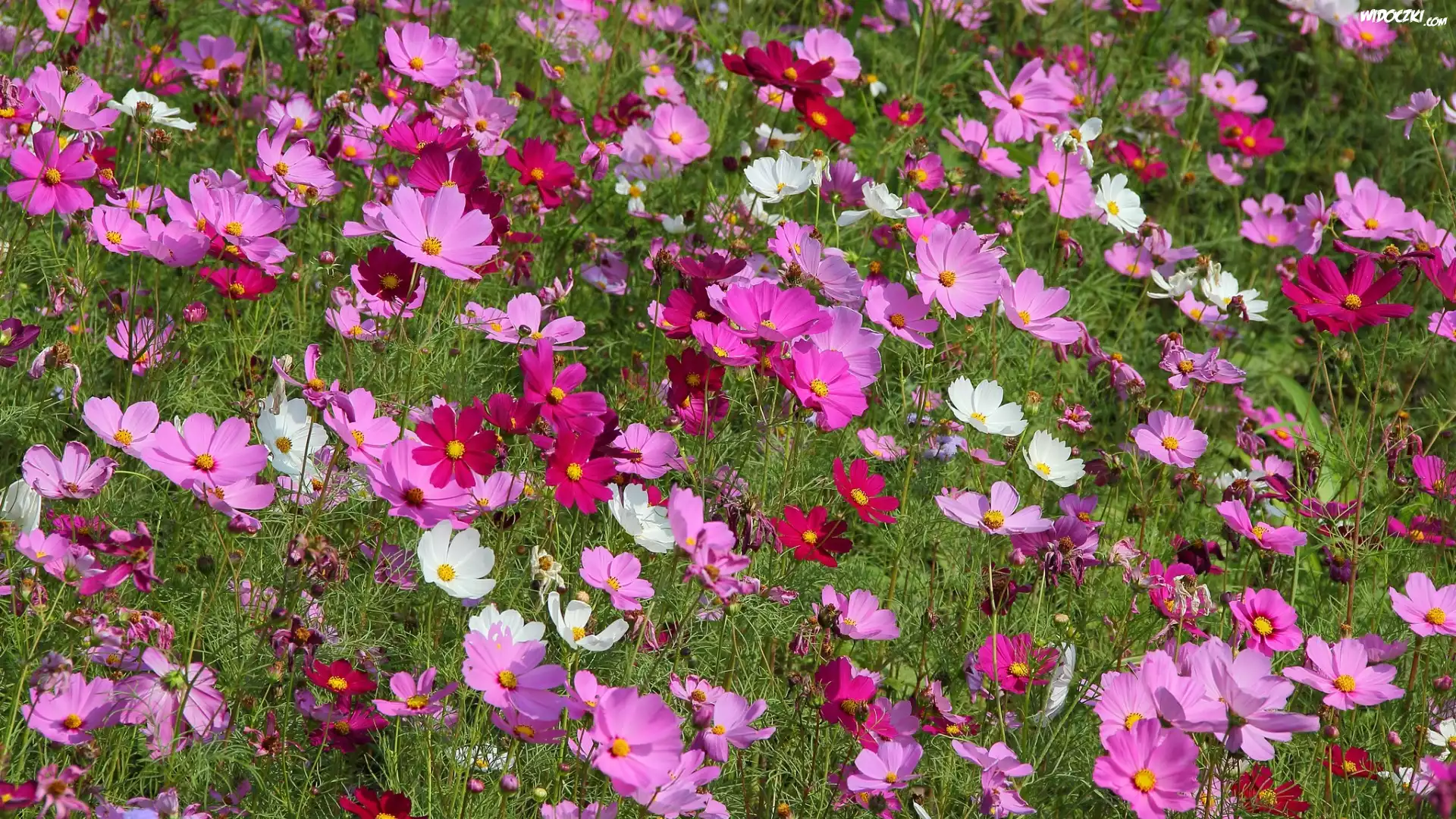 Zdjęcia, Kolorowe, Kwiaty, Kosmea, Łąka