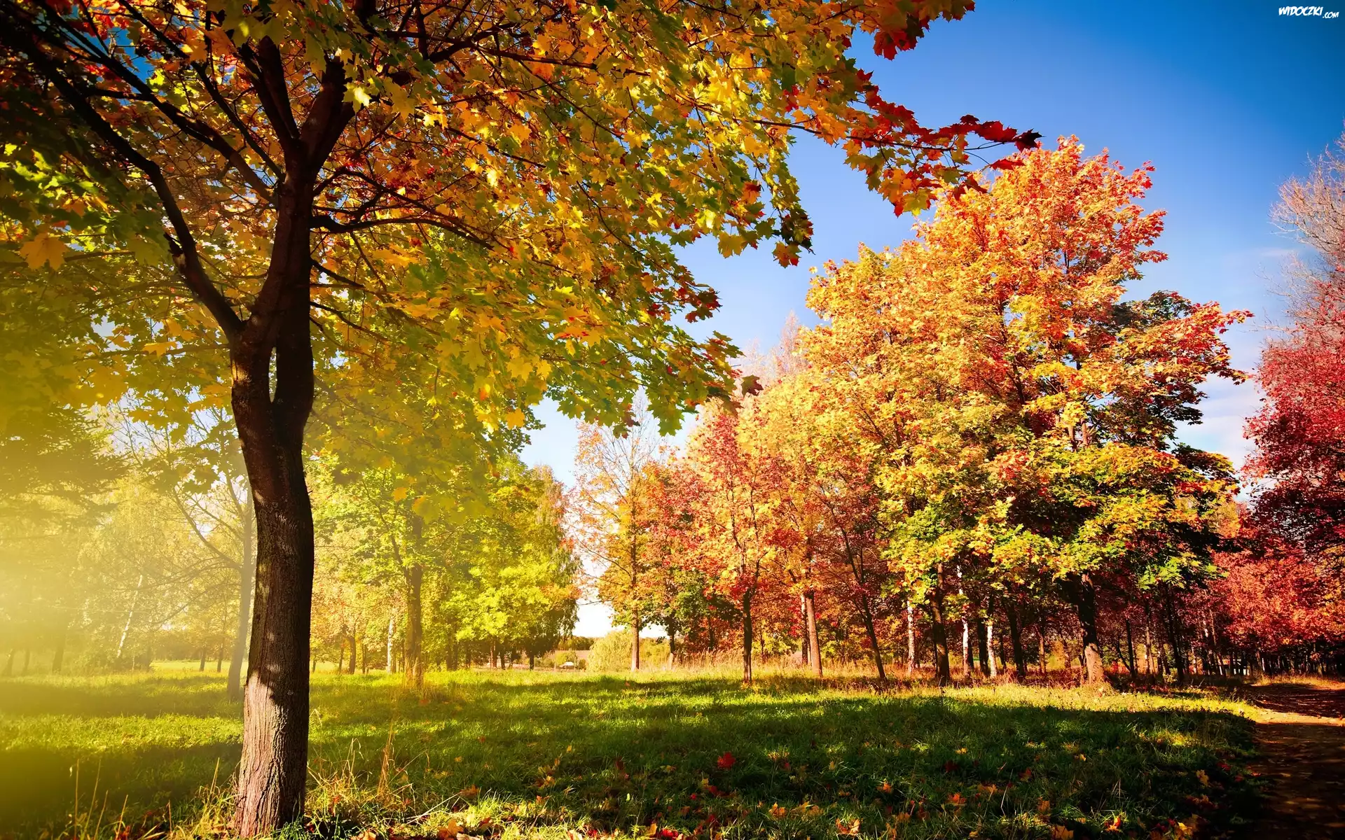 Zdjęcia, Kolorowe, Drzewa, Promienie, Słońca