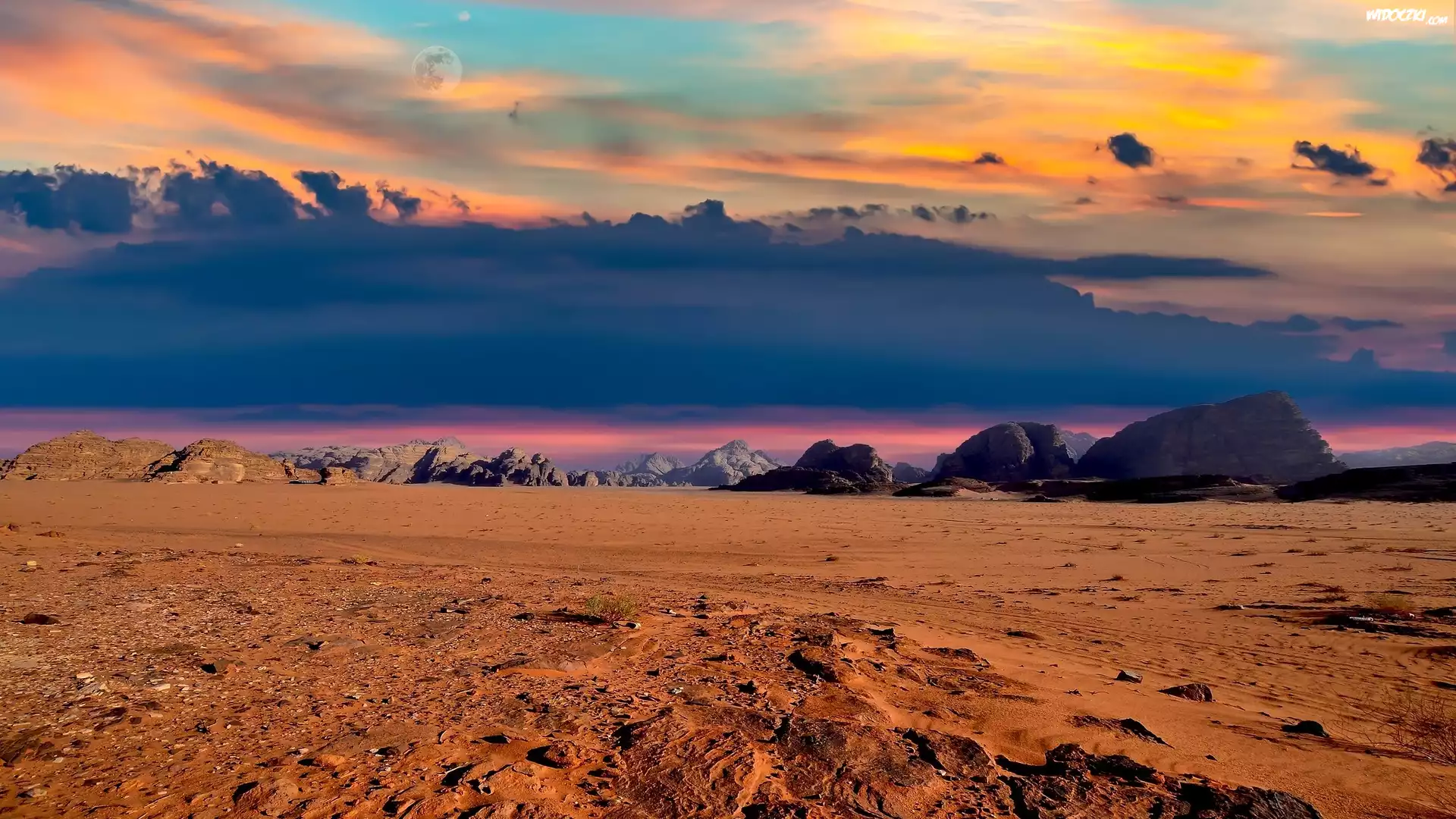 Kolorowe, Niebo, Skały, Piasek, Dolina, Wadi Rum Reserve, Jordania