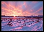 Zima, Zachód słońca, Kolorowe, Niebo, Ośnieżone, Pola