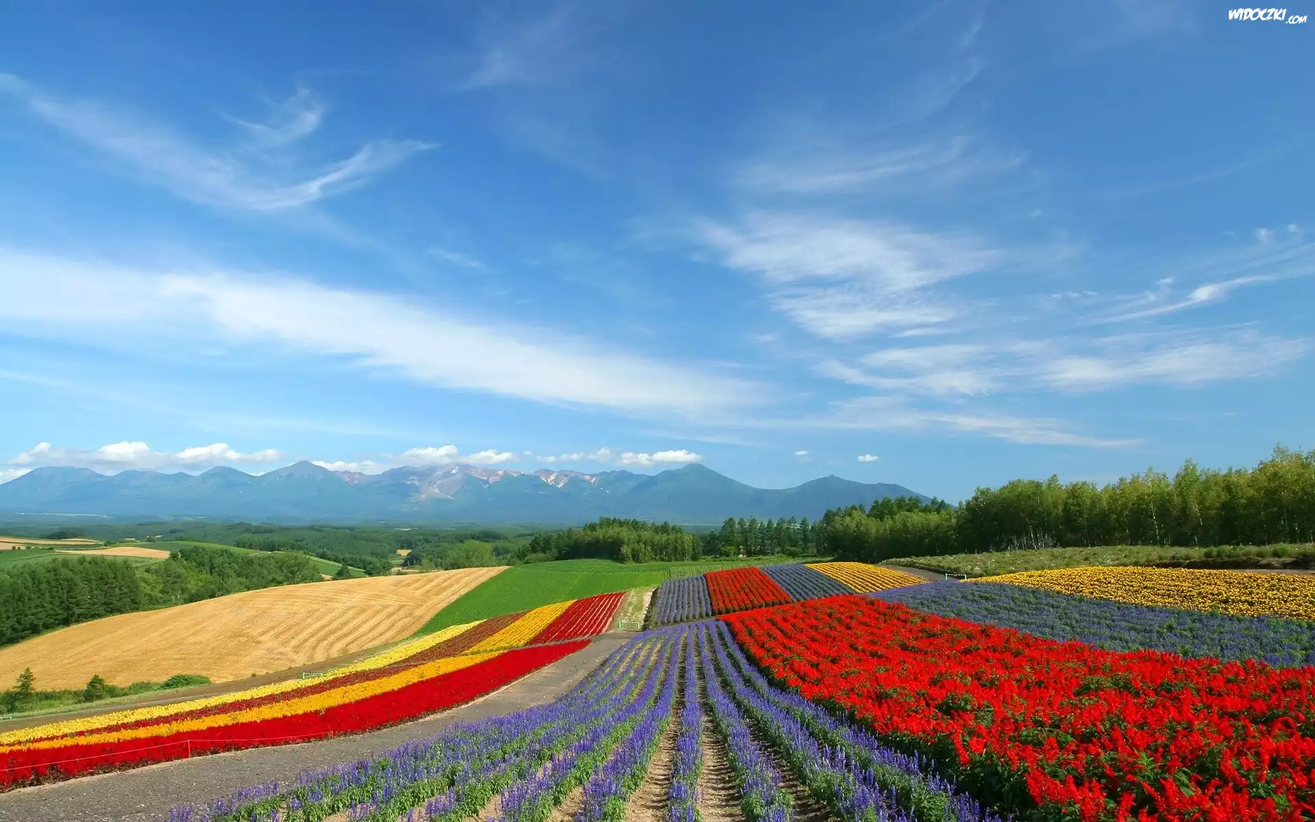 Kolorowe, Pole, Kwiaty, Szczyty, Gór