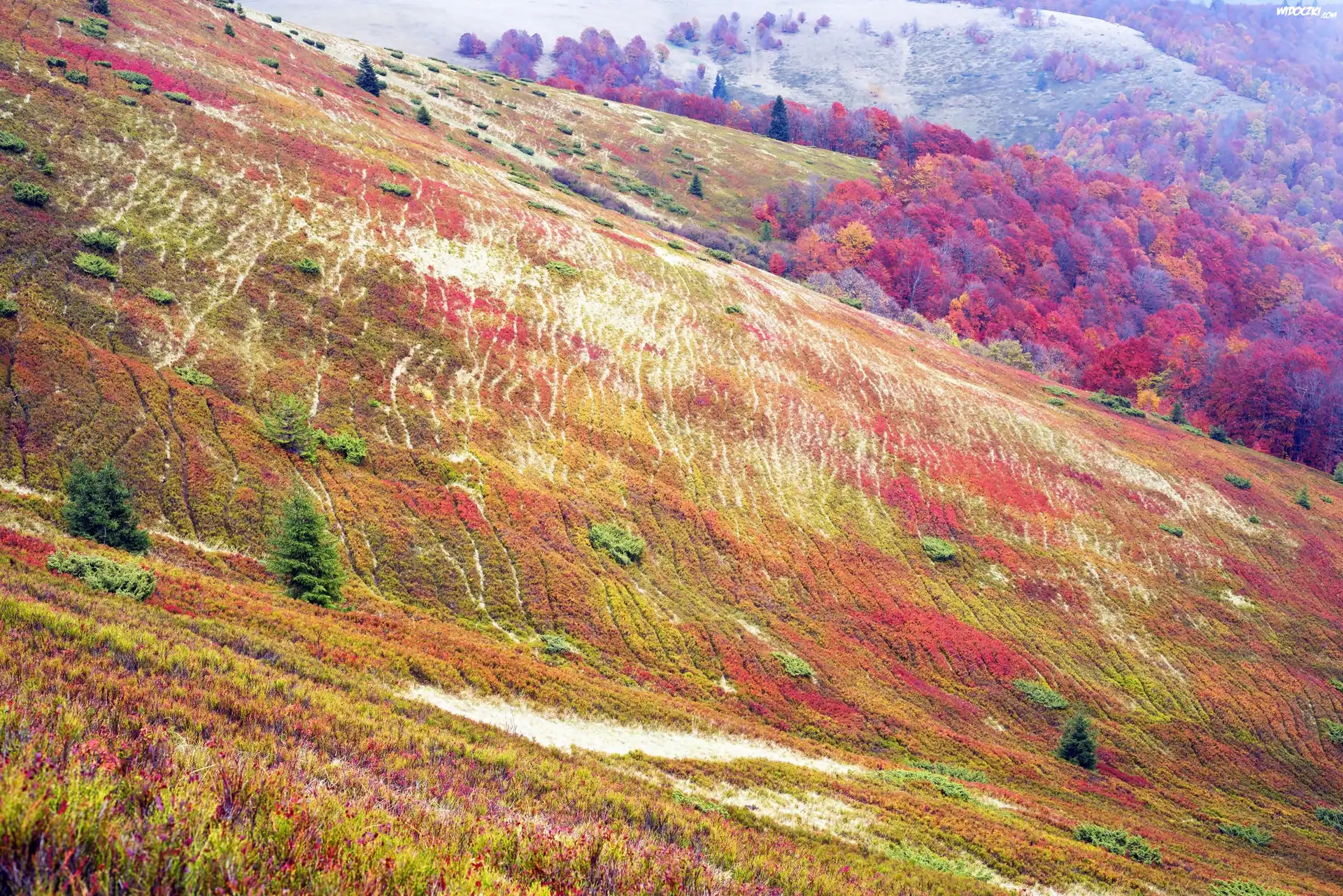 Zdjęcia, Kolorowe, Pola, Wzgórza, Jesień