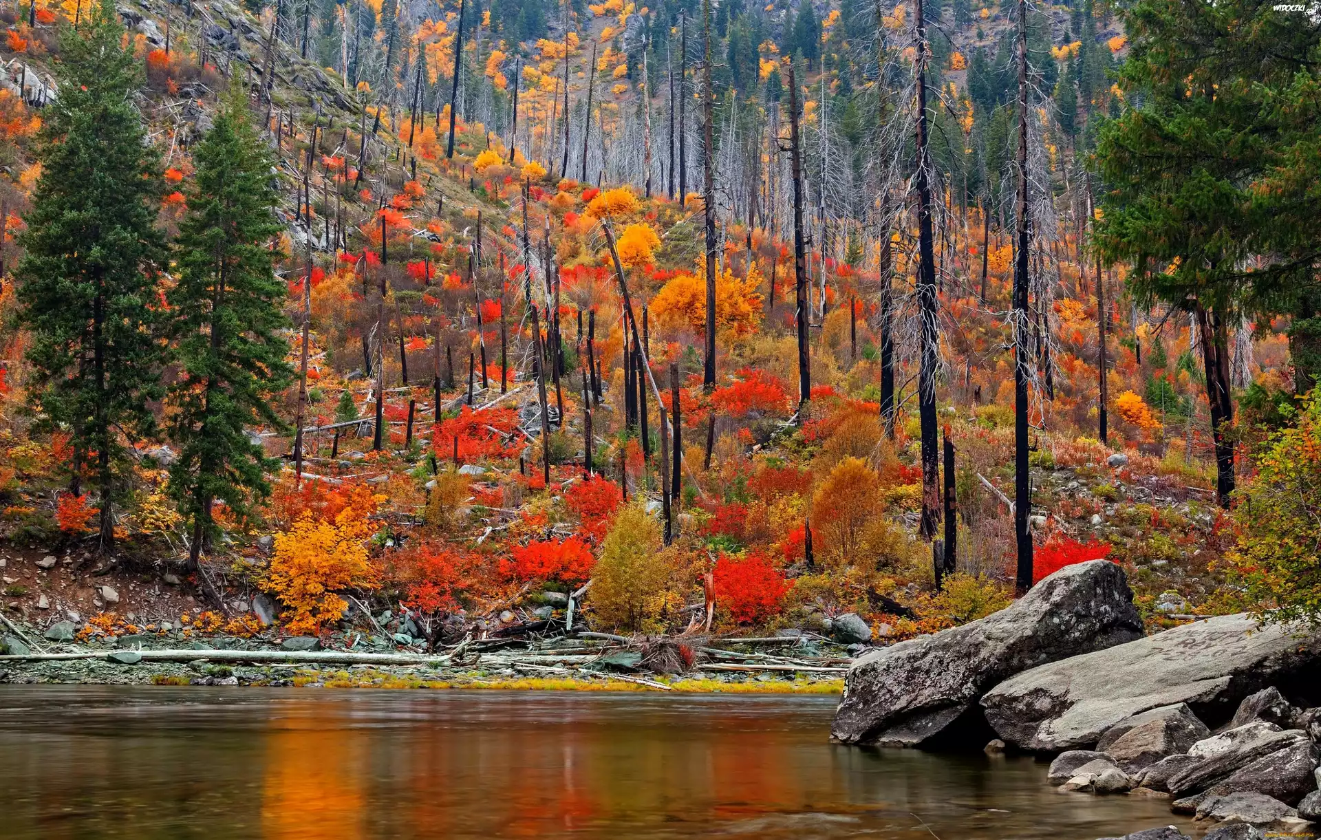 Zdjęcia, Kolorowy, Las, Kamienie, Woda