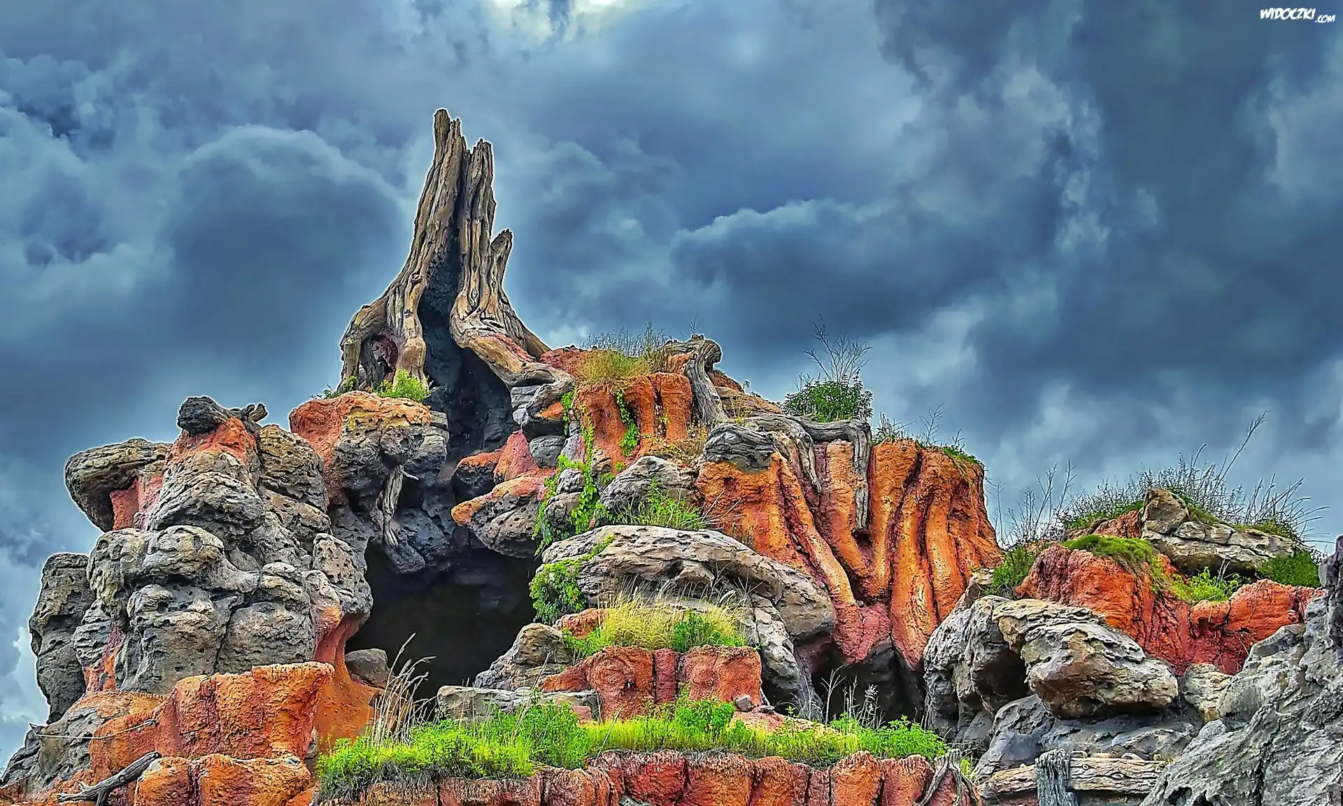 Zdjęcia, Kolorowy, Masyw, Skalny, Zachmurzone, Niebo