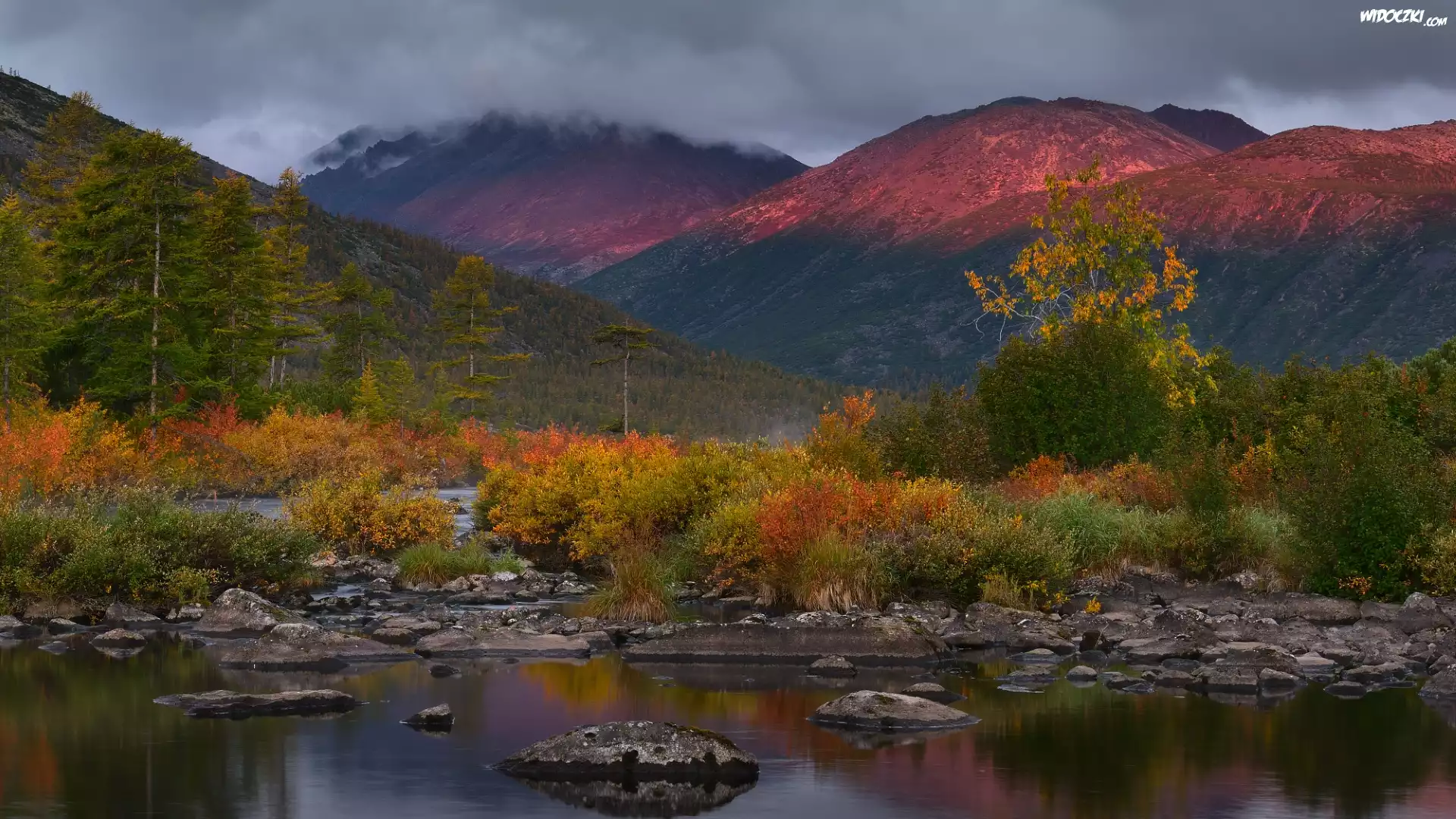 Jesień, Kołyma, Rosja, Góry Kołymskie, Jezioro Sosedneye