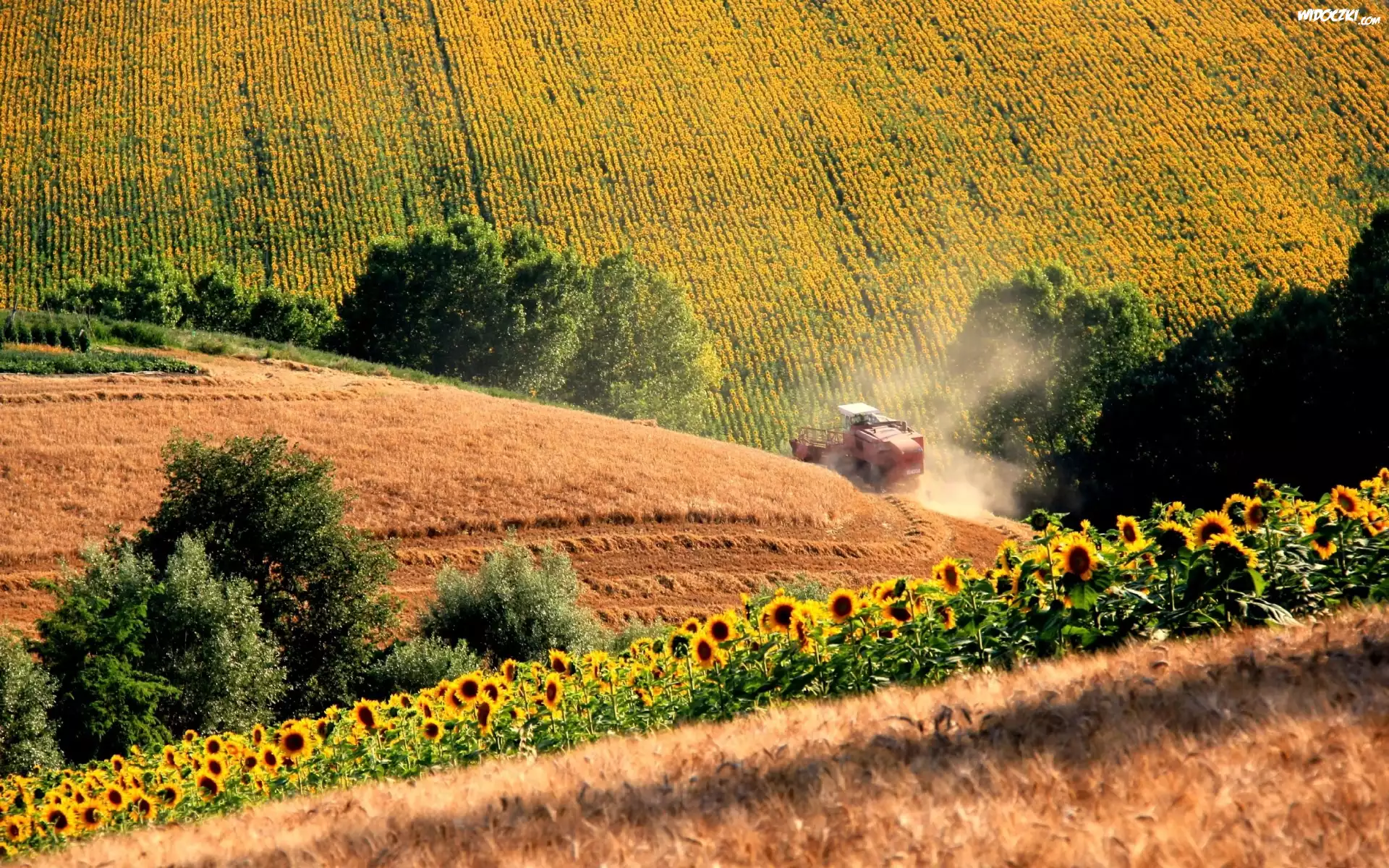 Zdjęcia, Pole, Kombajn, Słoneczniki