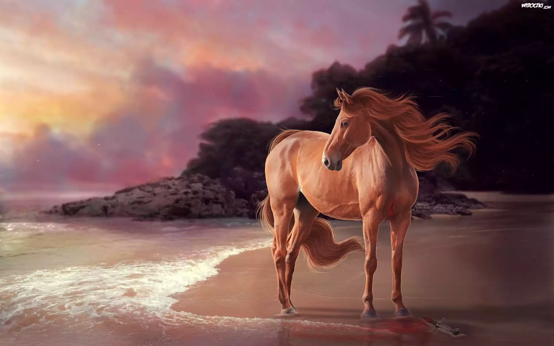 Koń, Morze, Brzeg, Góry
