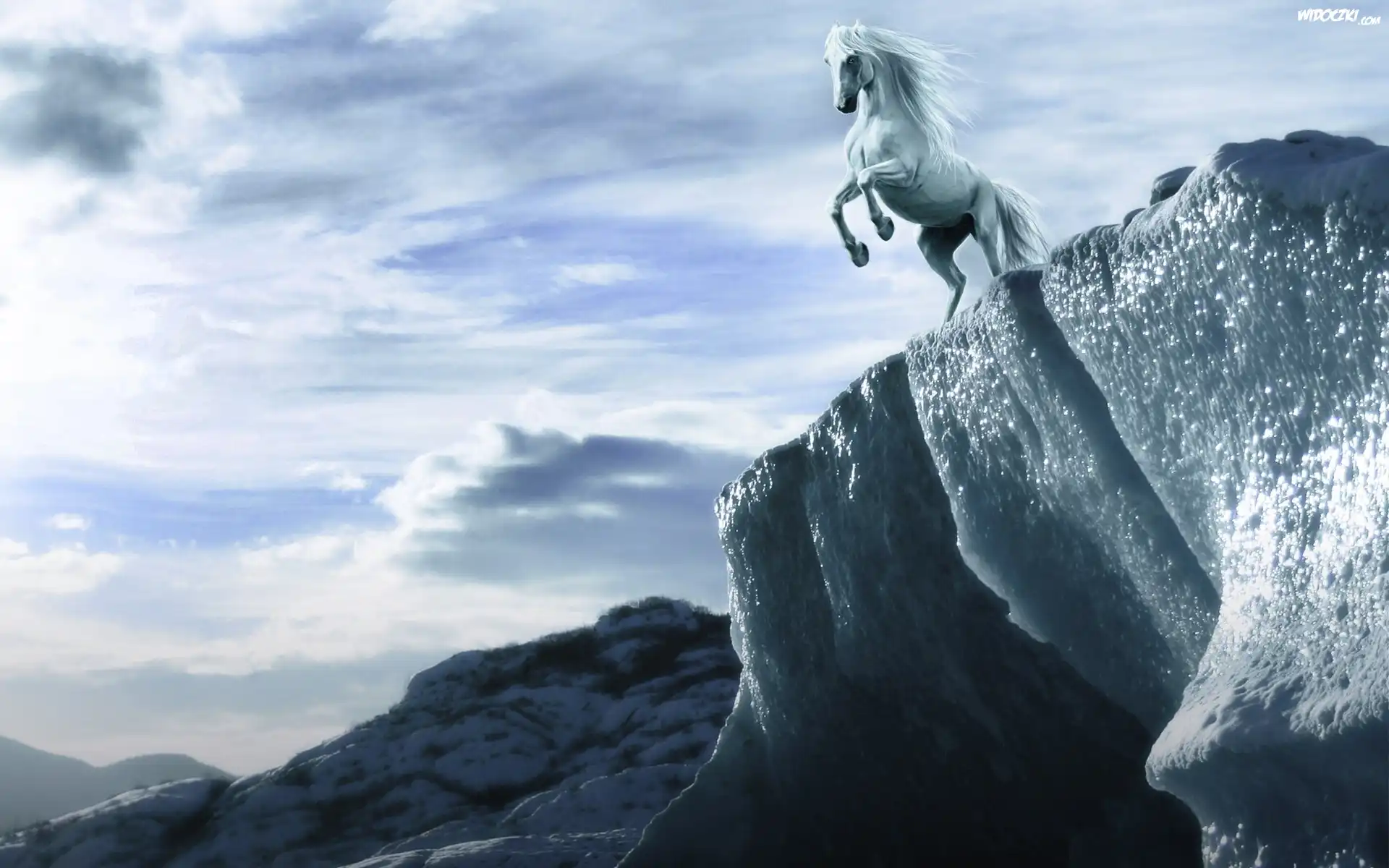 Zdjęcia, Koń, Góry, Chmury, Grafika