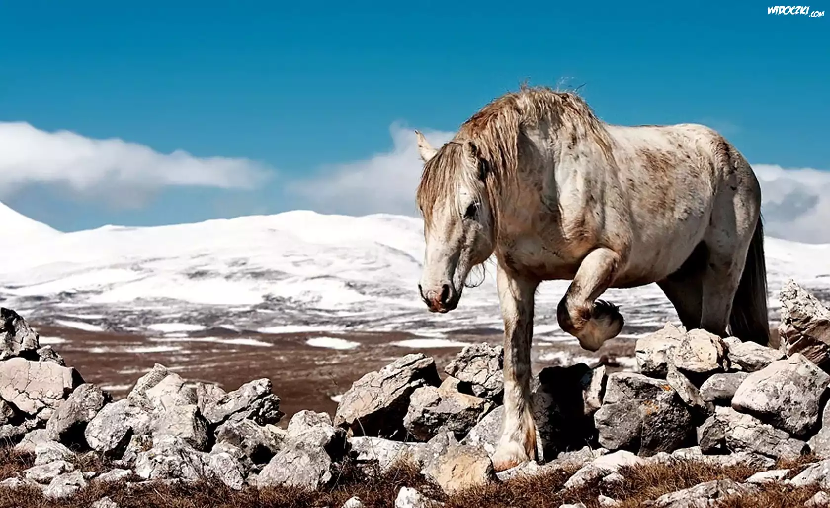 Zdjęcia, Wycieńczony, Koń, Kamienie